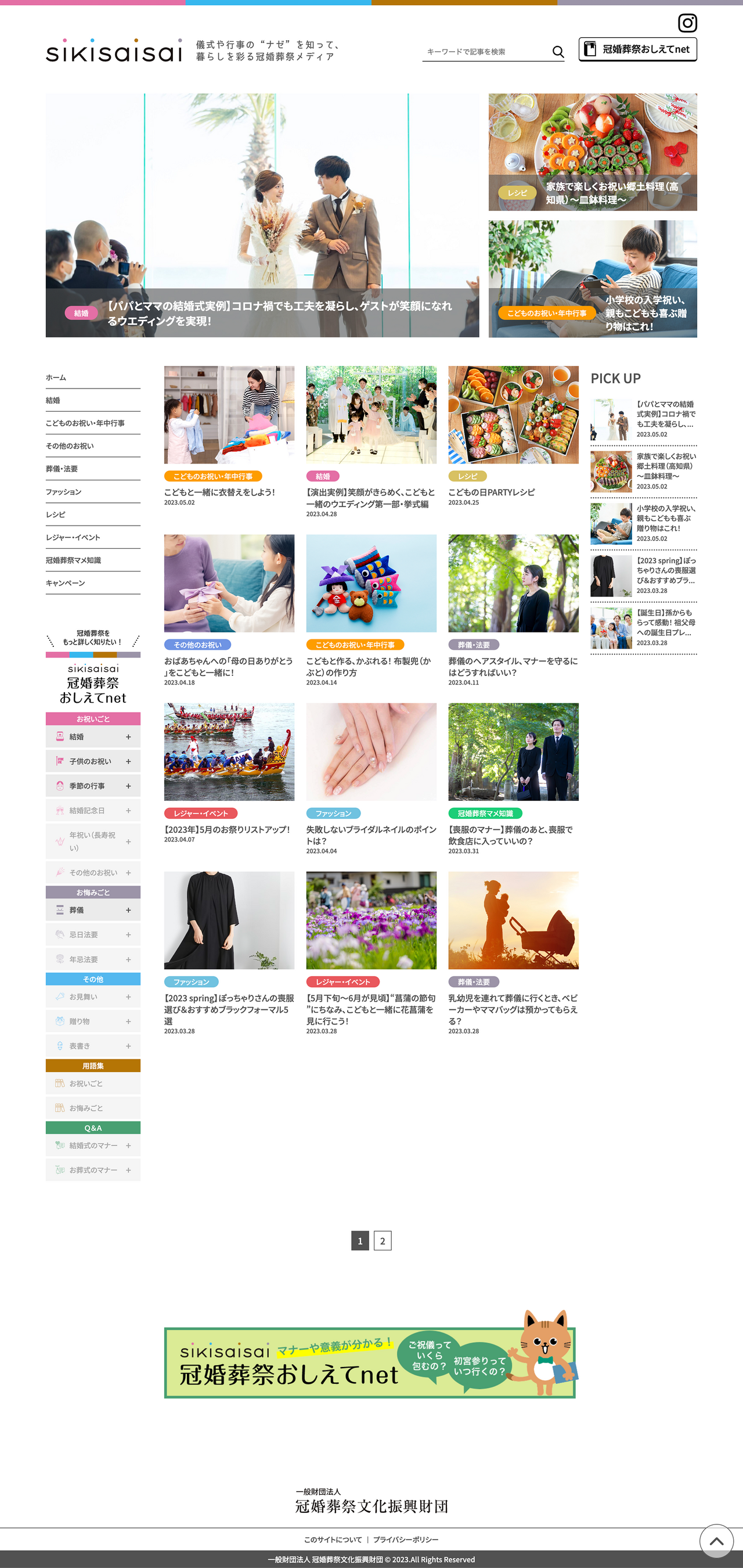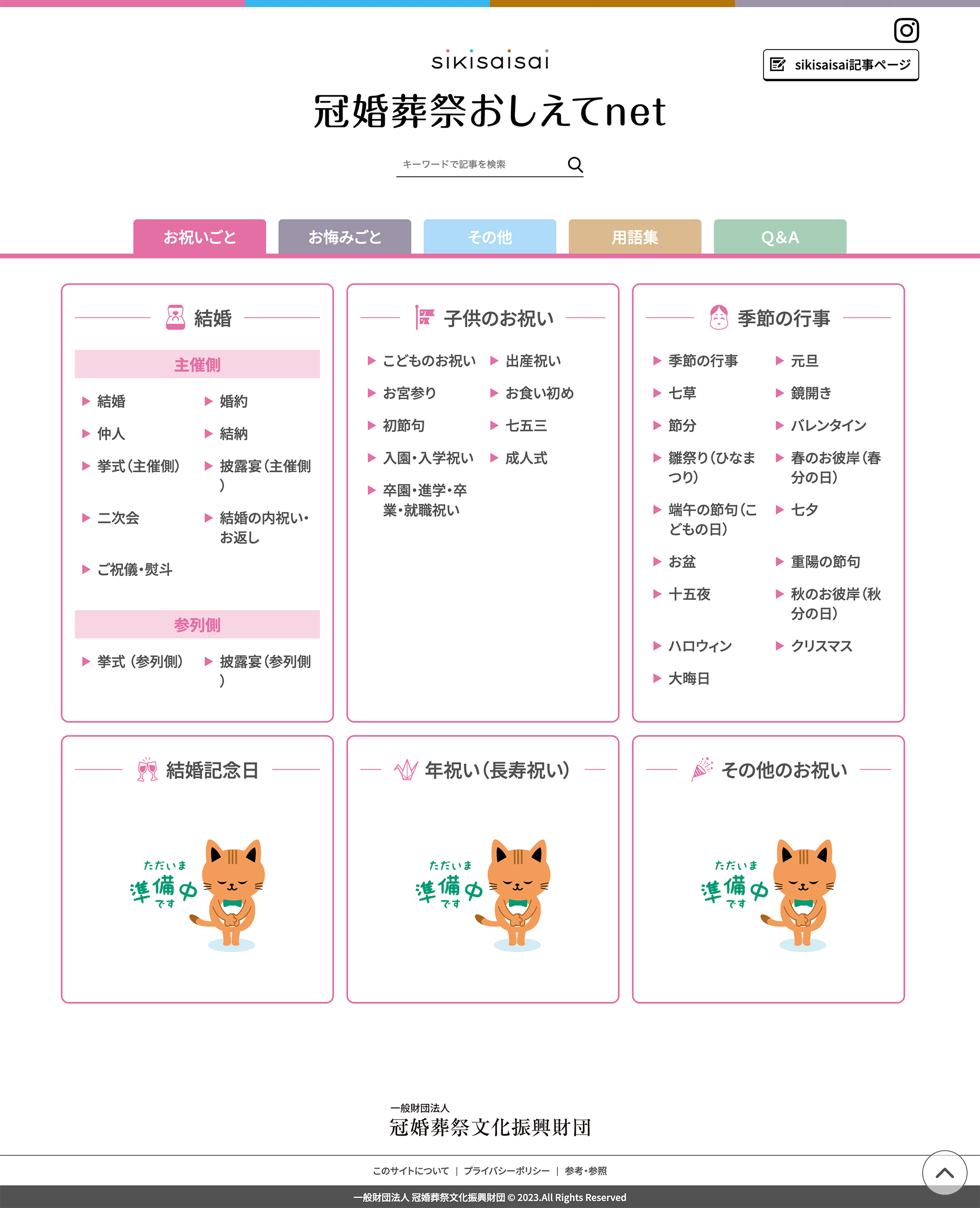 儀式や行事の“ナゼ”を知って、暮らしを彩る冠婚葬祭メディア「sikisaisai」は、毎週更新される"記事"と冠婚葬祭のマナーや意味を調べられるマニュアルの"おしらせnet"で構成されています。