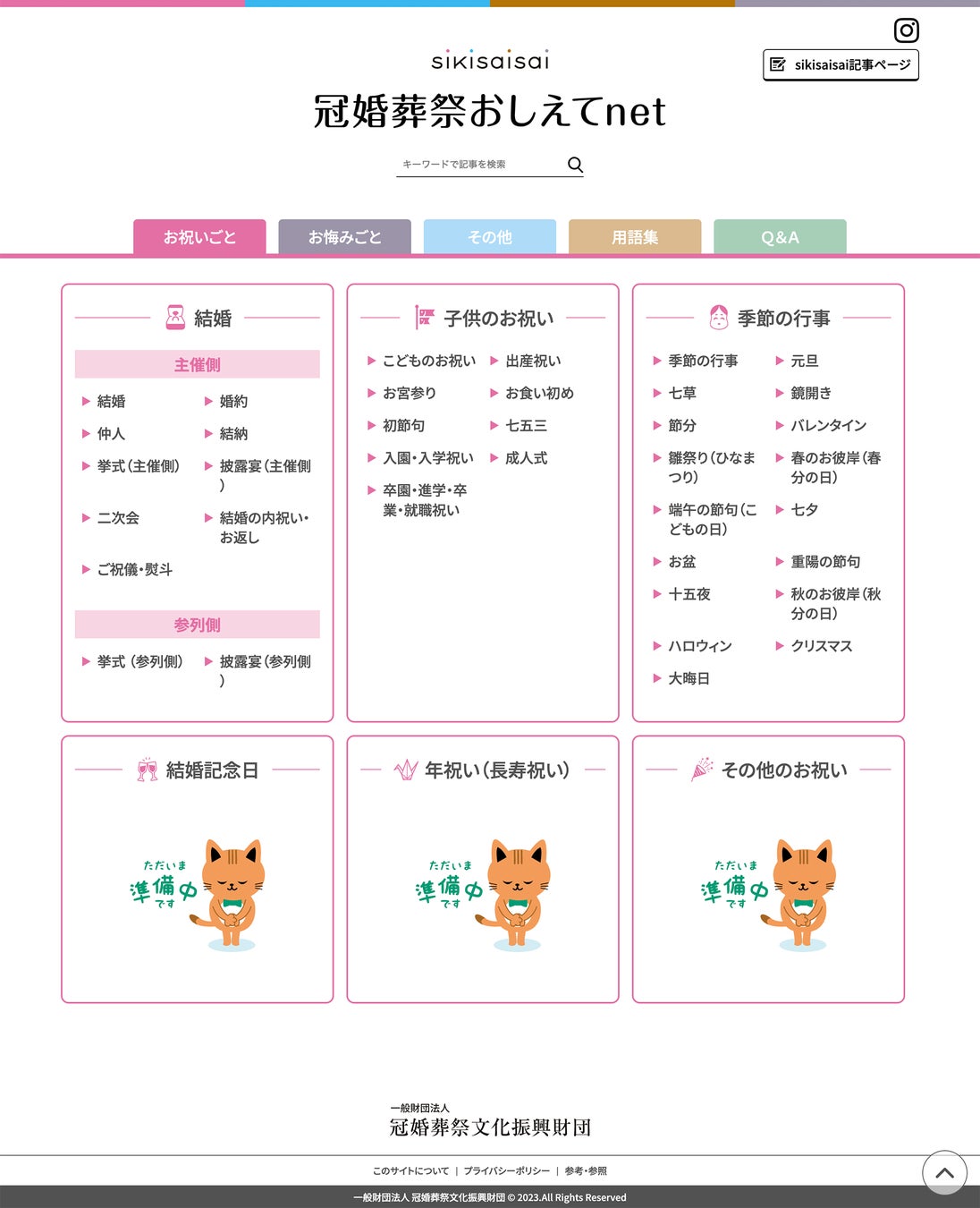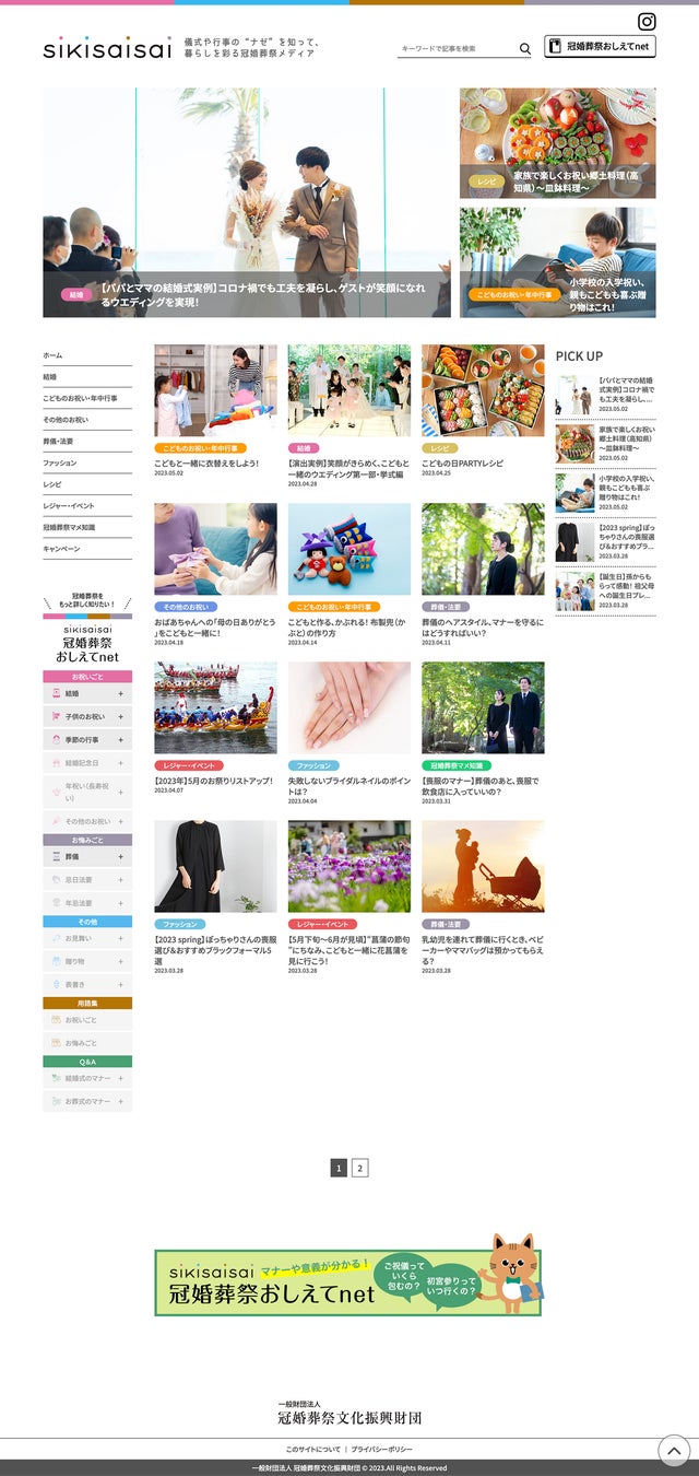 冠婚葬祭の最新トレンドやお役立ち情報を読みやすい記事として毎週掲載。もっと詳しく知りたい方向けに、冠婚葬祭のマナーや意味がわかる「おしえてnet」というHOW TOページも用意しています。日本の伝統文化である儀式や行事への関心を喚起し、身近で手軽なアイデアで普段の生活に取り入れ、暮らしに彩りを与える情報サイトです。