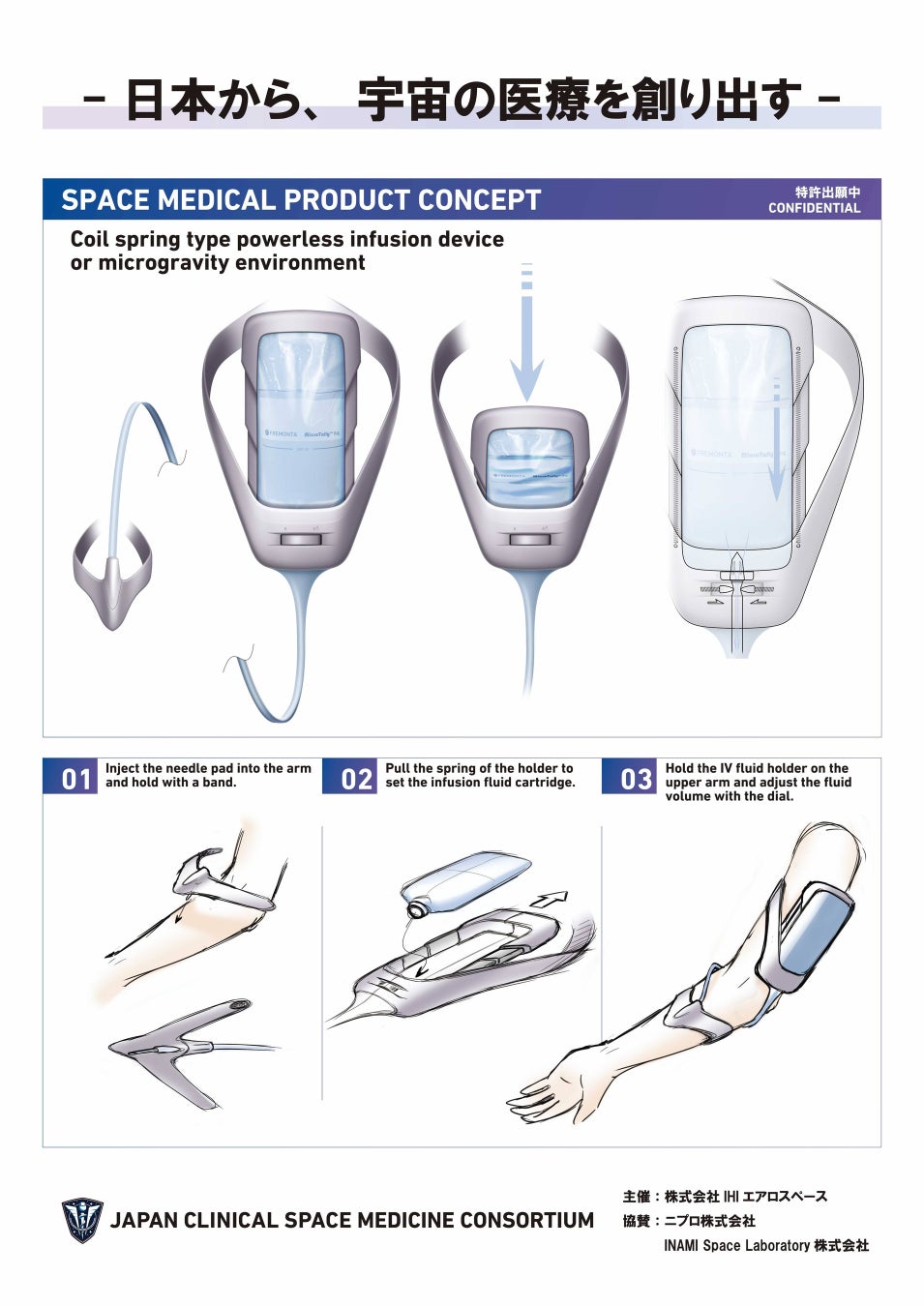INAMI Space LaboratoryはIHIエアロスペース、ニプロと連携し「宇宙」向け点滴装置の試作品を開発