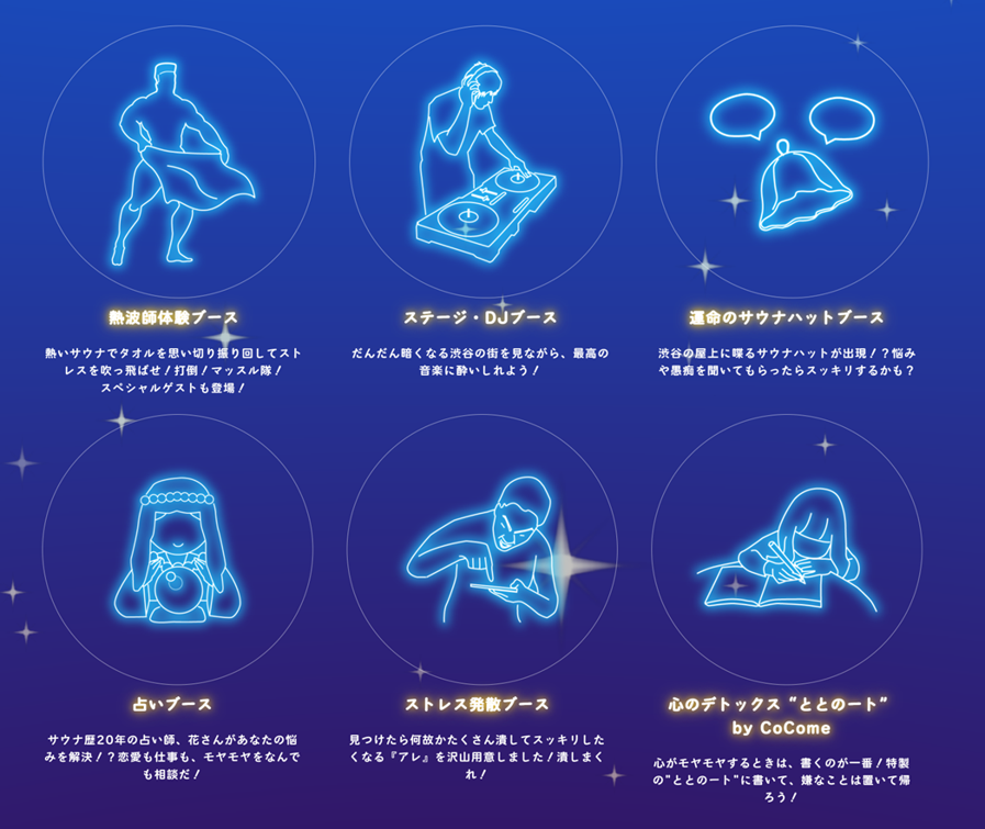 サウナ好き学生が集い交流の場を設計する東京大学サウナサークル「ロウリュ」が中心となり構成する青空ストレス発散fes実行委員会は、サウナの日である3月7日(火)にMAGNET by SHIBUYA109にて「青空ストレス発散fes supported by CoCome」(以下、本イベント)を開催いたします。渋谷ビル屋上にて、誰でも服を着たまま参加できるストレス・フリー体験を是非お楽しみください。