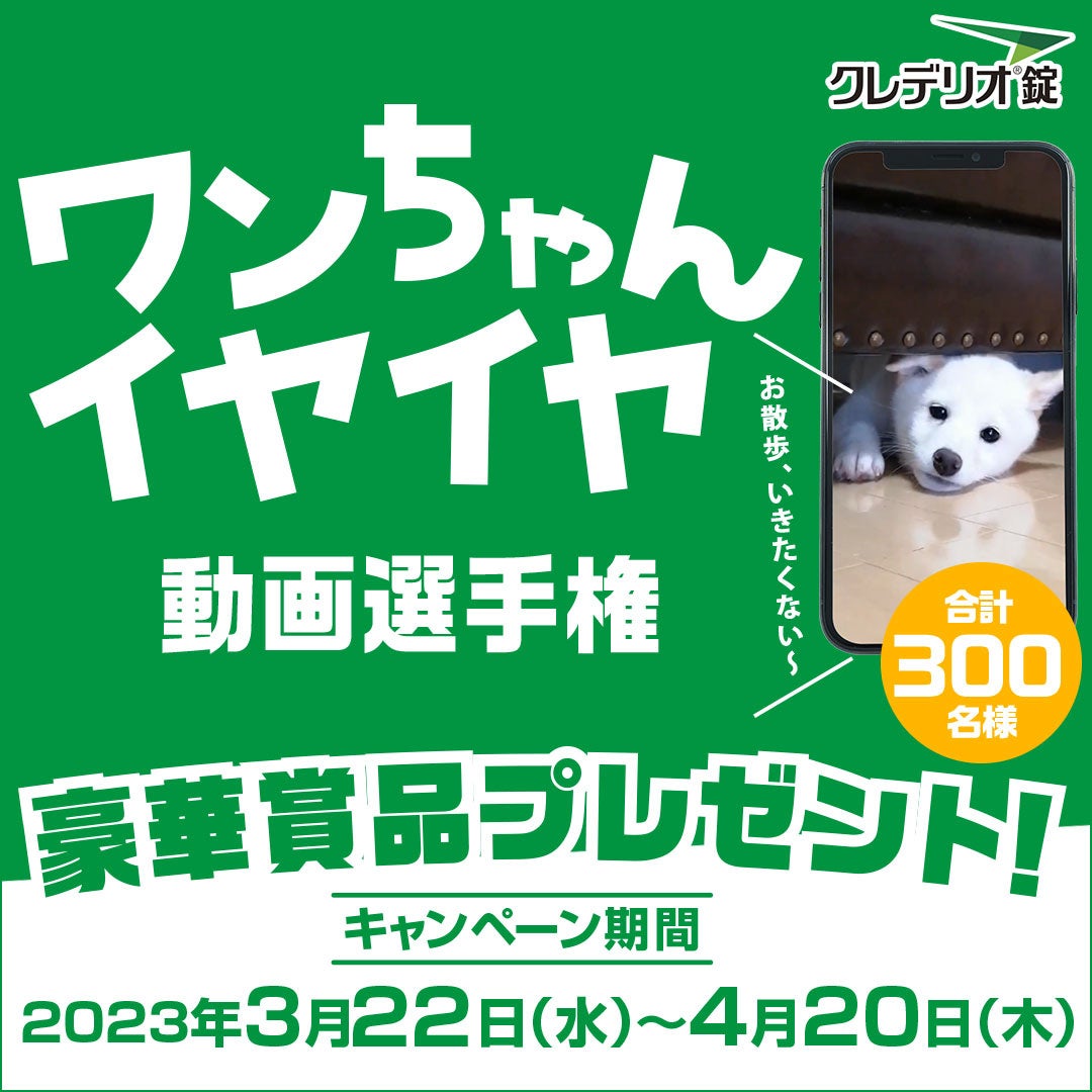 あわせて、300名様に飼い主様とワンちゃん両方がうれしい素敵なグッズが当たる、ワンちゃんの動画投稿キャンペーン「ワンちゃんイヤイヤ動画選手権」も本日より開催、特設サイトをオープンします。