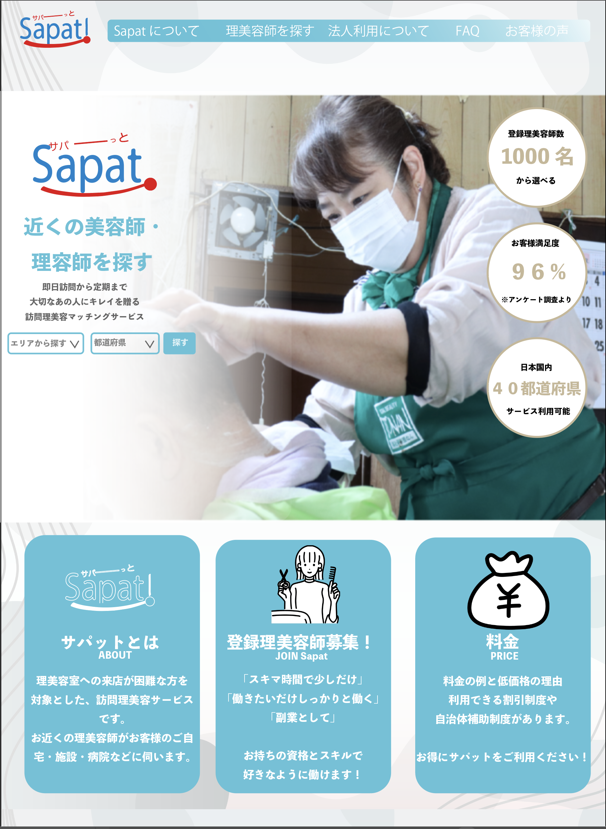 月7日(金)より日本全国で訪問理・美容が必要な顧客と訪問理・美容師をマッチングさせる新サービスSapat(サパット)をリリースいたします。