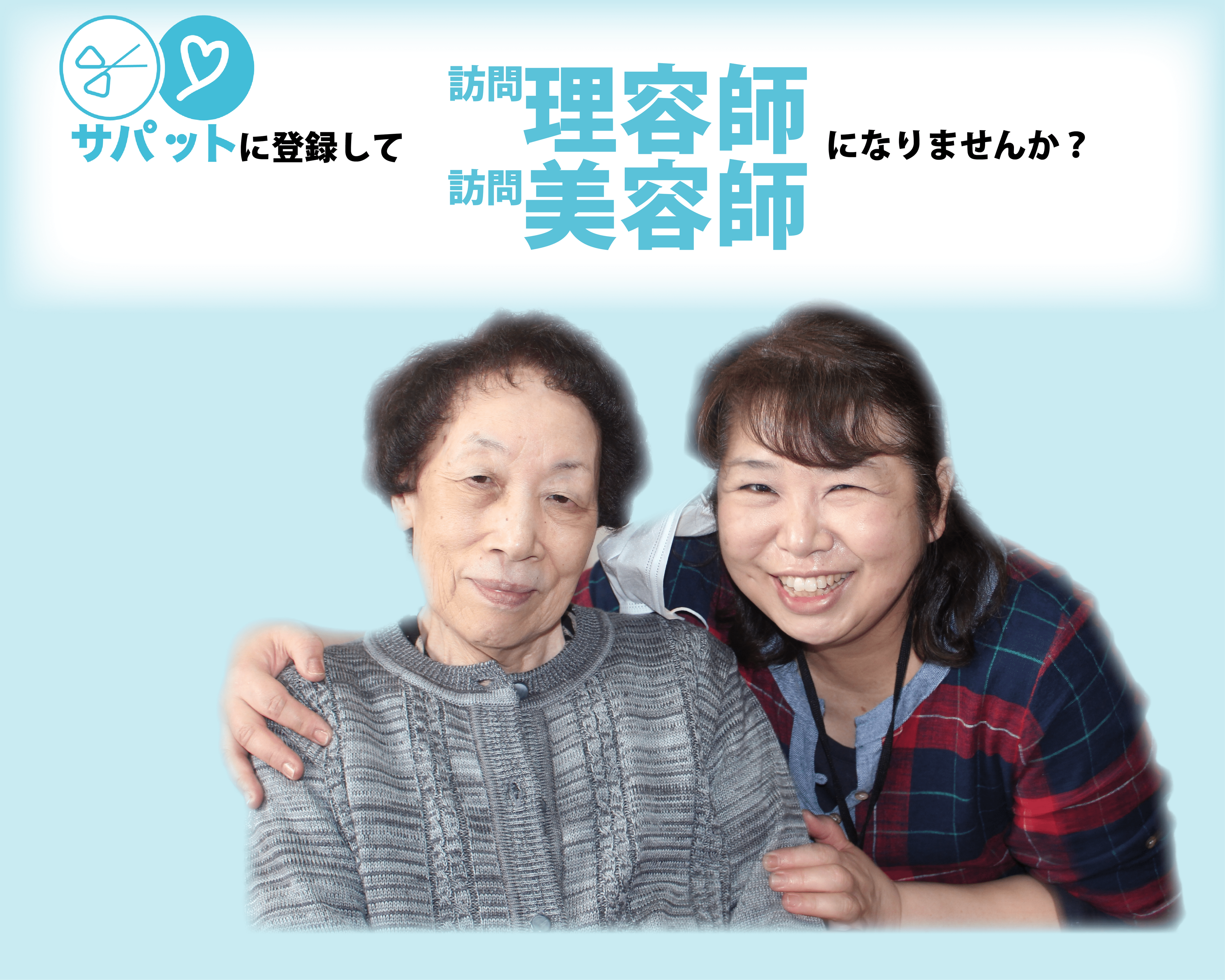 サパットで顧客が希望する訪問先に近い登録理美容師を検索し、施術の依頼と決済まで完了するため、遠方で離れて暮らす家族や親族・友人へ美容のプレゼントとしてご利用いただいくことができます。さらにはケアマネージャーや介護施設からの依頼にも順時対応していきますので、法人・ 団体でのご利用も可能となります。 サパットで何歳になってもどこに住んでいてもいつでも健常者と同じように美容師・理容師を利用できる社会を作ってまいります。