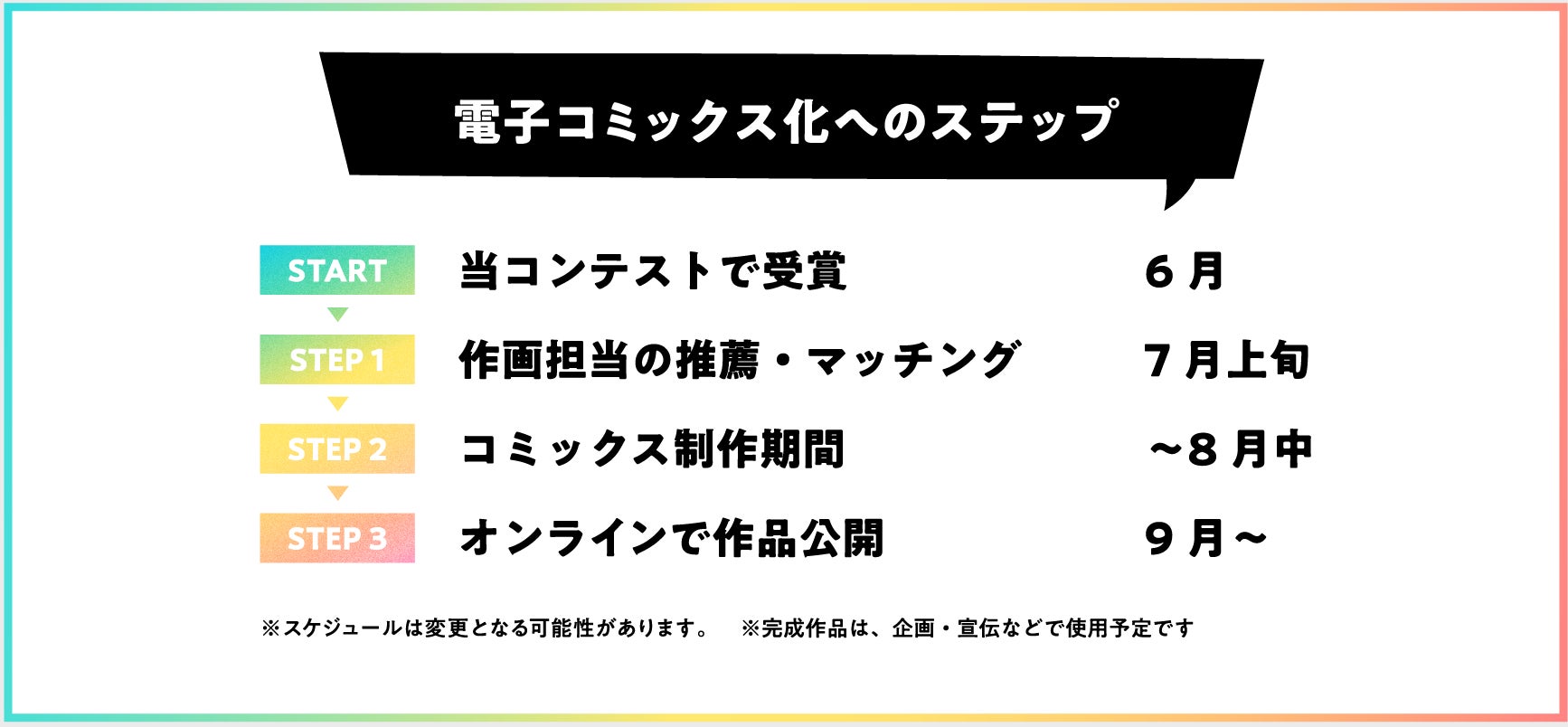 電子コミックス化までは、以下のスケジュールに基づき進行を予定しています。