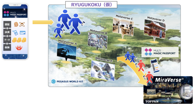 株式会社ジェーシービー、株式会社みずほフィナンシャルグループ、株式会社三井住友フィナンシャルグループ、株式会社三菱UFJフィナンシャル・グループ、株式会社りそなホールディングス、損害保険ジャパン株式会社、凸版印刷株式会社、富士通株式会社、三菱商事株式会社、TBT Lab株式会社(以下、TBT Lab)は、TBT LabグループのJP GAMES株式会社(以下、JP GAMES)が開発したメタバース構築フレームワーク「PEGASUS WORLD KIT」(以下、PWK)を用いたBtoBオープン・メタバース基盤「リュウグウコク(仮)」の構築および「ジャパン・メタバース経済圏」※1の創出に向けて基本合意書(以下、本合意書)を締結しました※2。