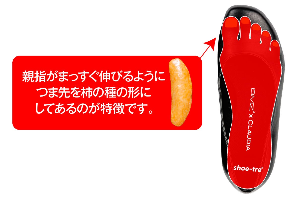 (1)足指を曲げずに履ける、柿の種の形のつま先