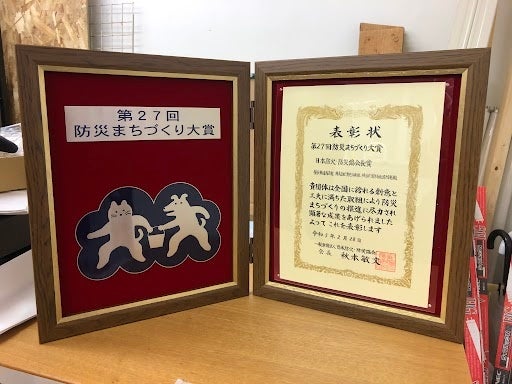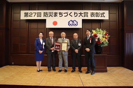 これに伴い、2023年2月28日(火)には「第27回防災まちづくり大賞表彰式 」が行われ、上記3団体の連名で受賞の表彰楯をいただきました。