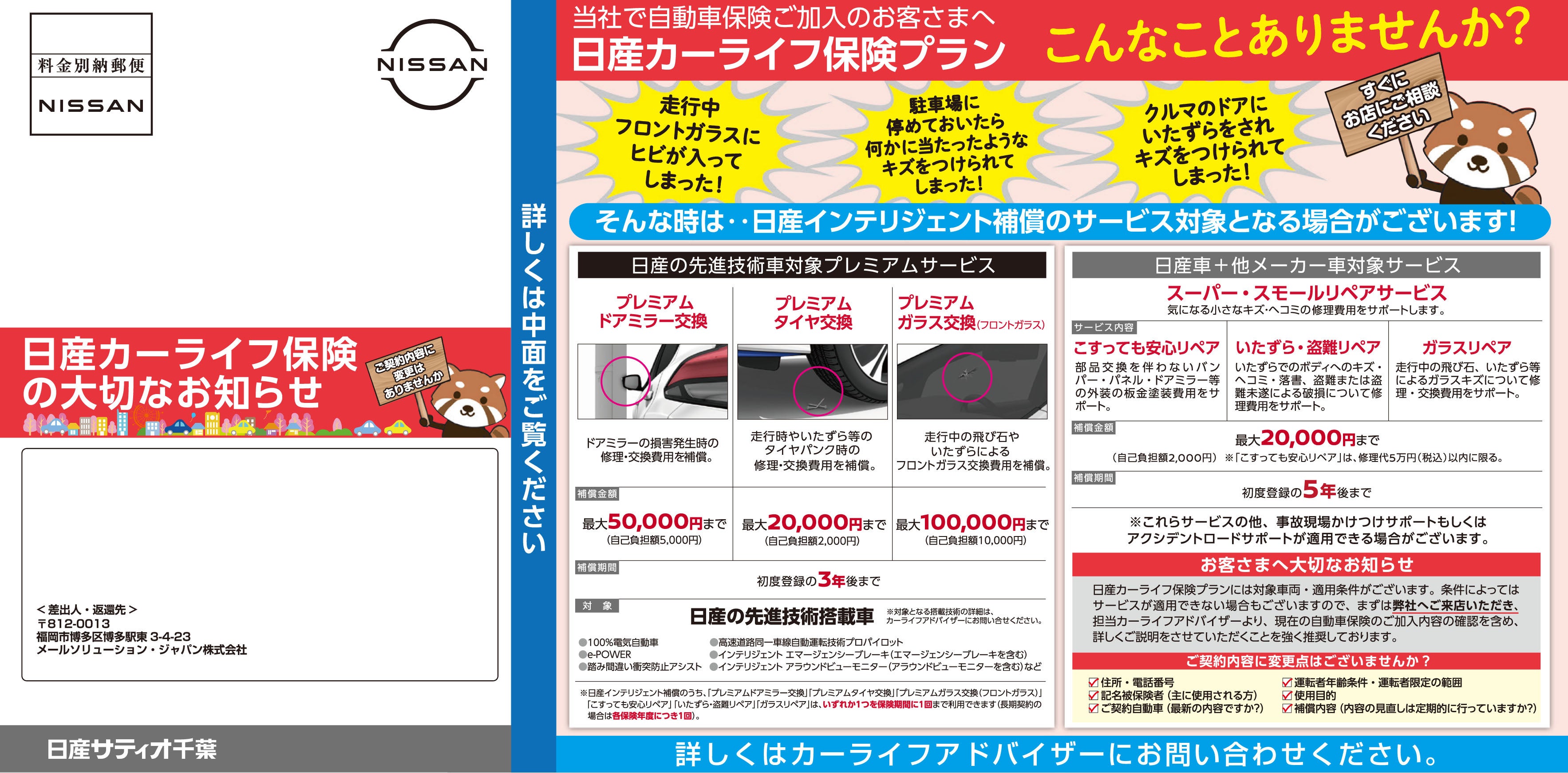 日産サティオ千葉様のDM発送業務において、従来の手動作業による宛名シール貼りやはがき在庫管理などの課題を解決するために、Cloud上で管理しているお客様リストから発送対象とDMデザインを選択し、簡単に発送できる仕組みを導入しました。