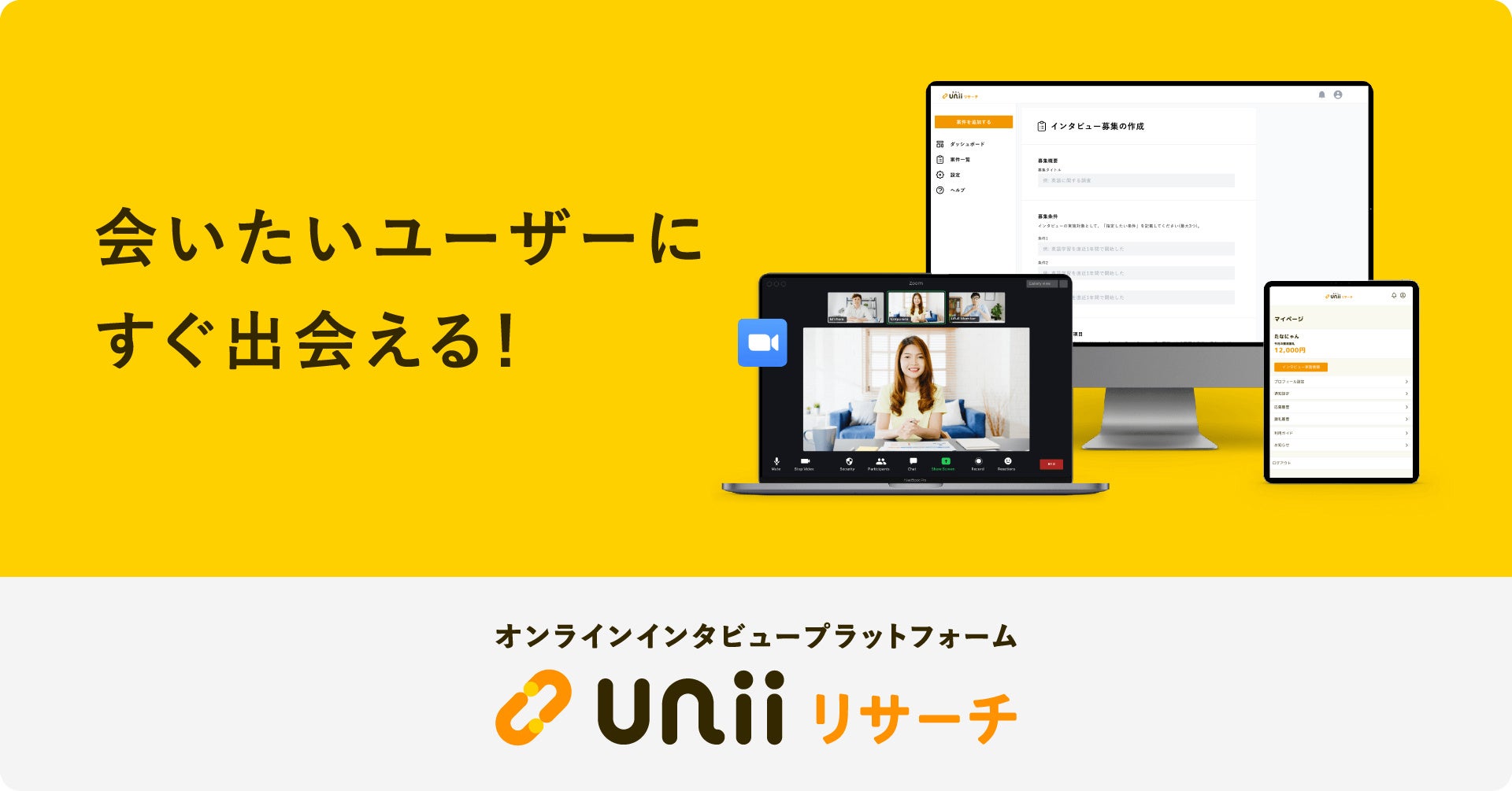 ユニーリサーチは「最短当日・従来調査コストの10分の1以下」でユーザーインタビューによる顧客調査が可能なセルフ型リサーチサービスです。顧客の価値観が多様化する中、「顧客起点」に新規事業やサービスの改善を行いたいという企業が増えています。