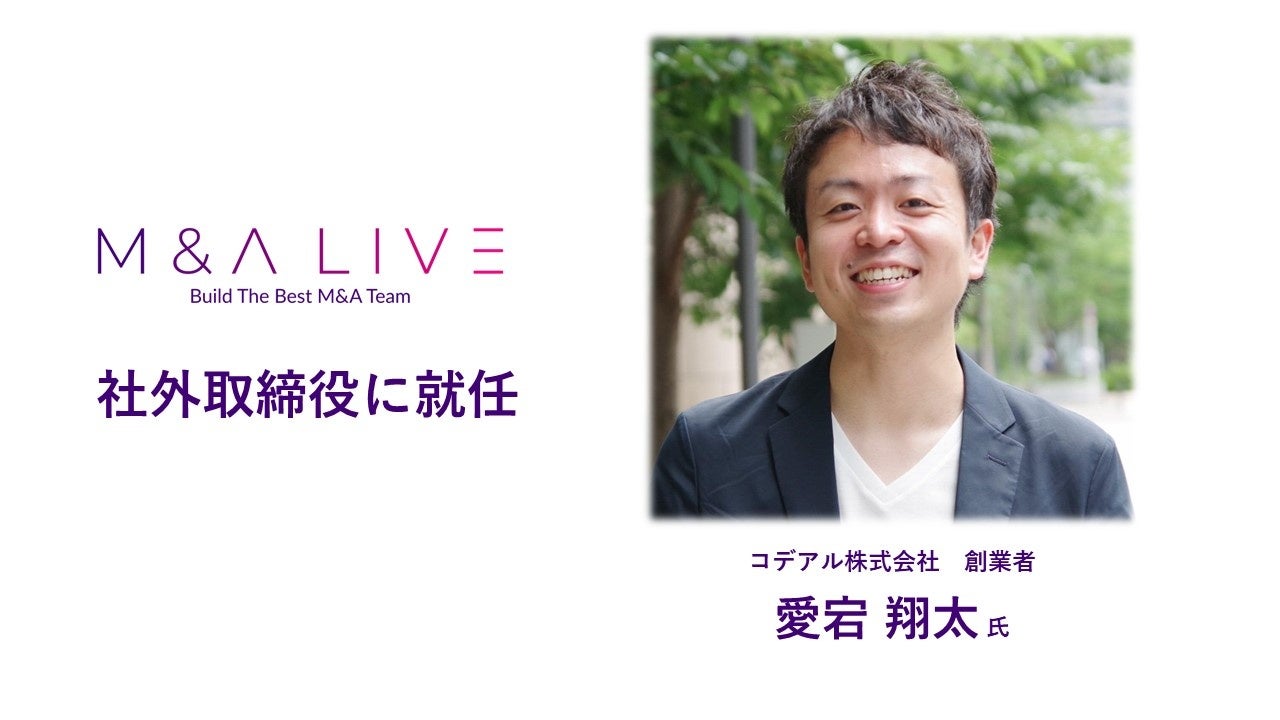 M&A事業者と買手を結ぶサービスを展開するM&A LIVE株式会社(本社:東京都港区、代表取締役:関根匠)の社外取締役にコデアル株式会社の創業者である愛宕翔太氏が就任したことをお知らせします。