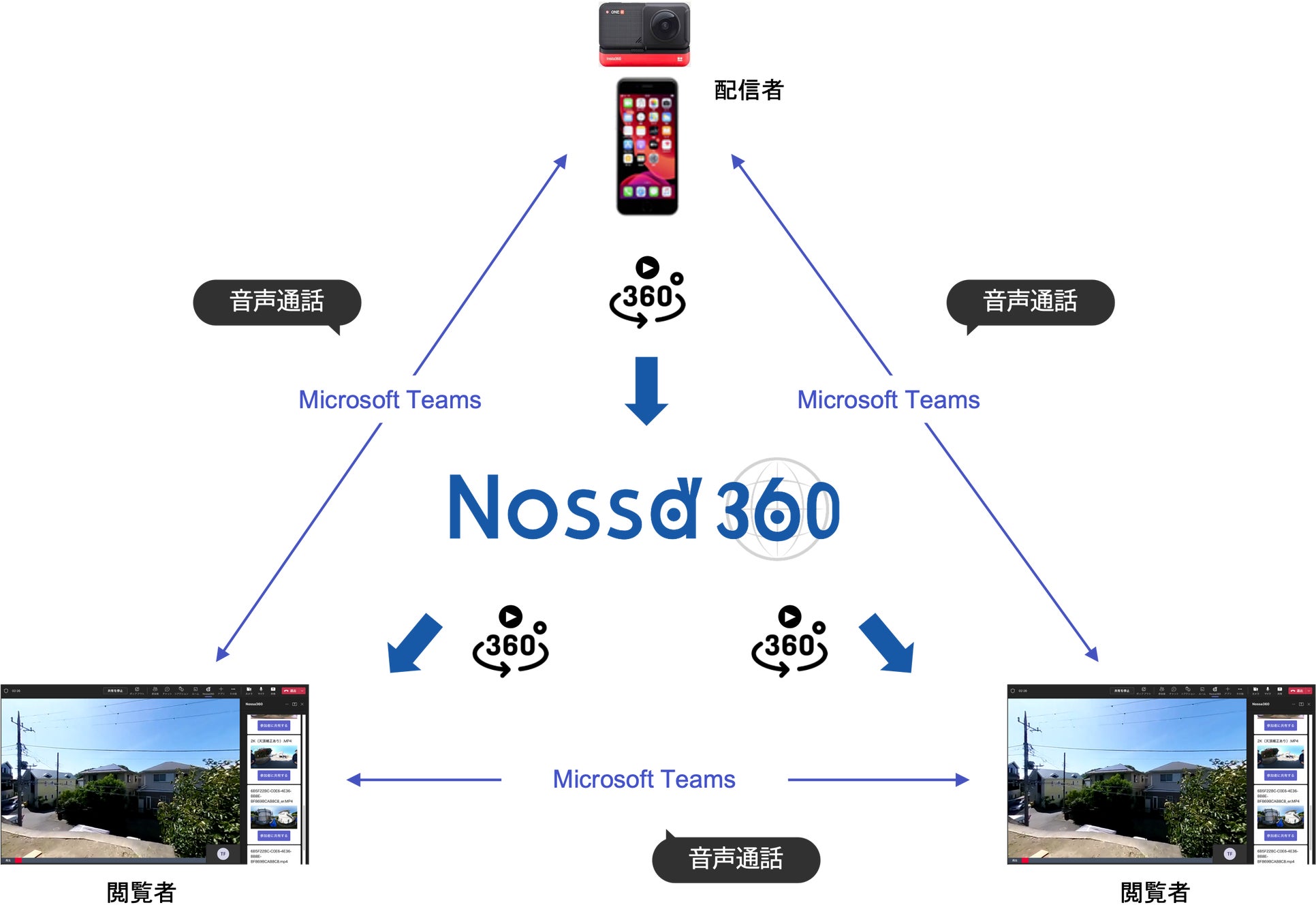 Nossa360の360度リアルタイム配信映像を Microsoft Teams の会議画面上で視聴可能に