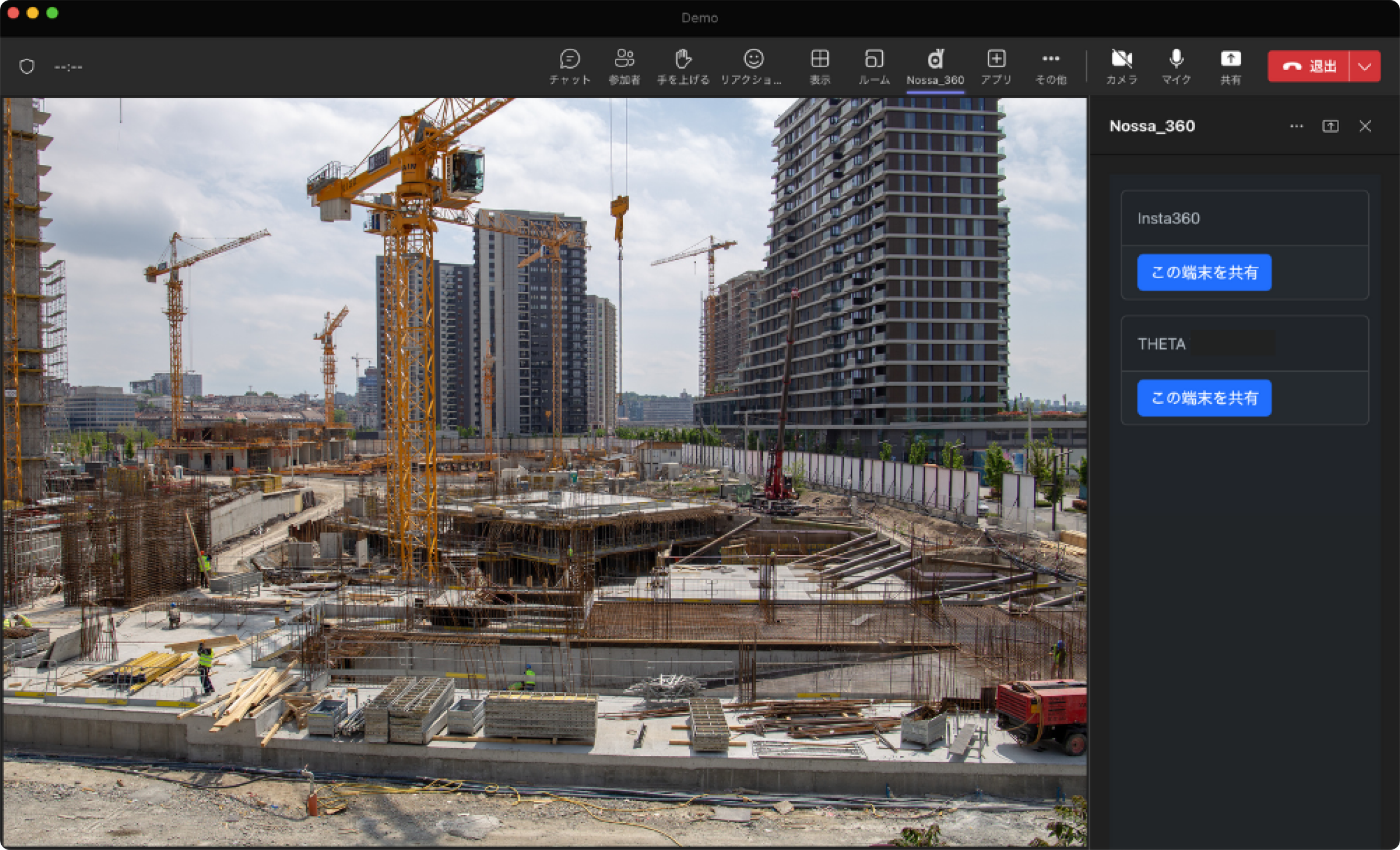 Teams の画面上で、Nossa360の360度映像を閲覧することができます。参加者は、使い慣れたTeams に普段通り参加するだけで、Nossa360を利用可能です。
