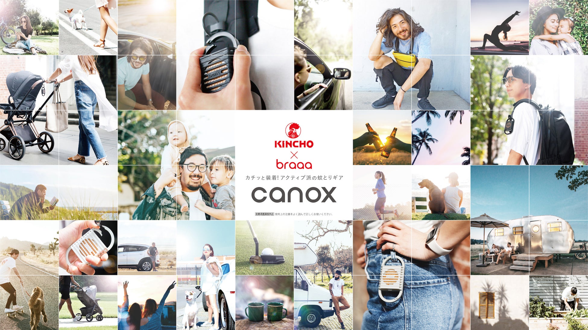 株式会社ベニヤ(東京都千代田区岩本町3-8-16 NMF神田岩本町ビル9F 代表取締役 石井 宏史)は、衣・食・住にまつわるライフスタイルブランドbraaa(ブラー)より、蚊取線香でおなじみ殺虫剤の老舗ブランドKINCHO(大日本除虫菊株式会社、本社:大阪市)と共同開発した「カチッと装着!アクティブ派の蚊とりギア “canox”(カノクス)」を5月下旬を予定にbraaaオンラインや楽天市場(plywood)などで発売します。