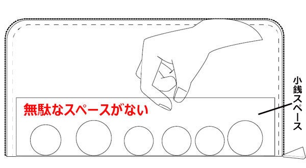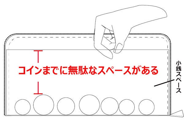 従来のラウンドジップ長財布は小銭入れが深い為見えずらく、取り出しにくさがありました。