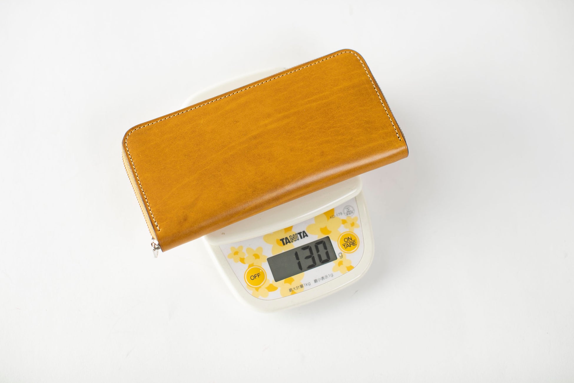 極小長財布 batard-バタール-は、不必要なパーツを取り除くことにより、外装も内装も本革の長財布なのに、『約130g』という、軽い財布にすることができました。