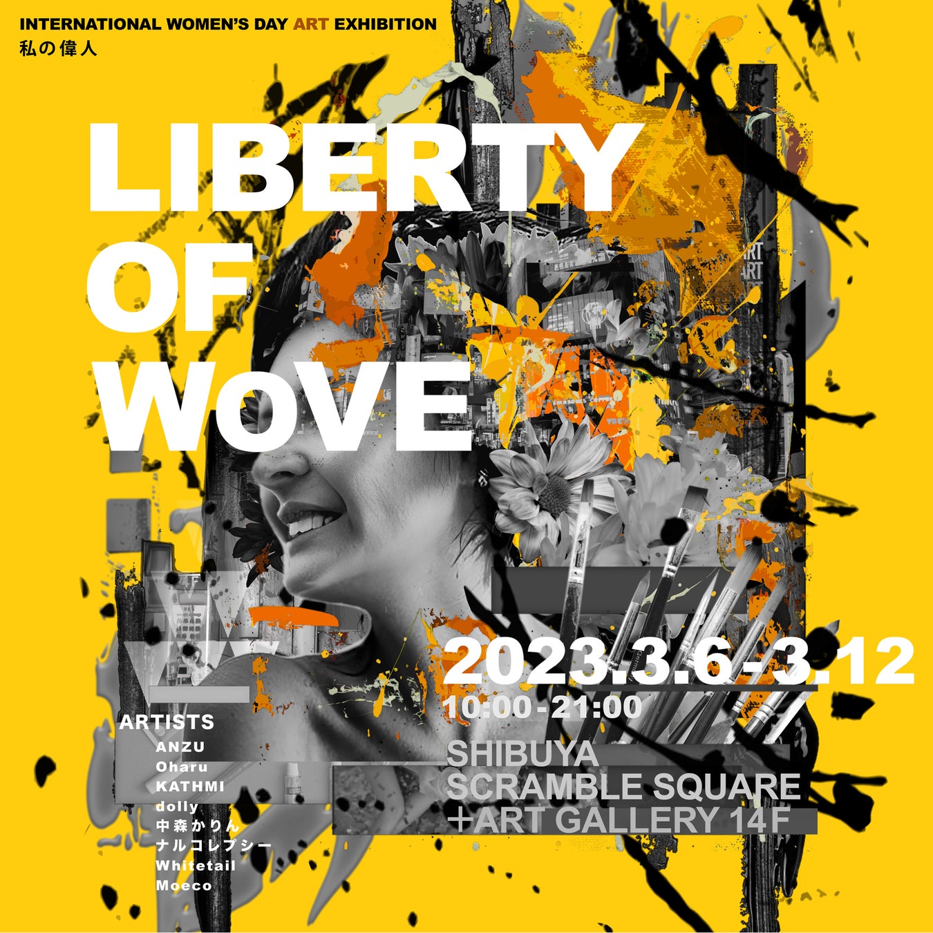 2023年3月6日(月)から3月12日(日)、渋谷スクランブルスクエア14階プラスアートギャラリーにて、国際女性デーにちなんだアートの展示会『LIBERTY OF WoVE - INTERNATIONAL WOMEN'S DAY ART EXHIBITION 私の偉人 - 』を開催。(「LIBERTY OF WoVE」は「Woman」+「Move」の造語となる。)