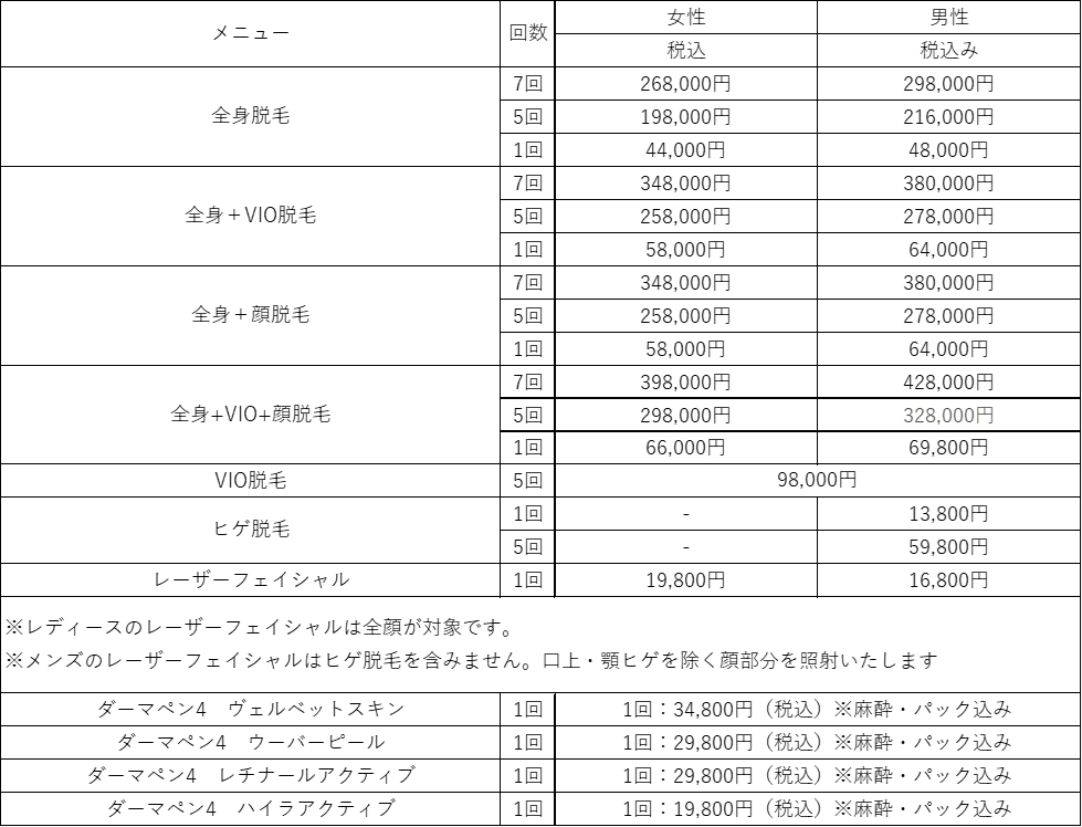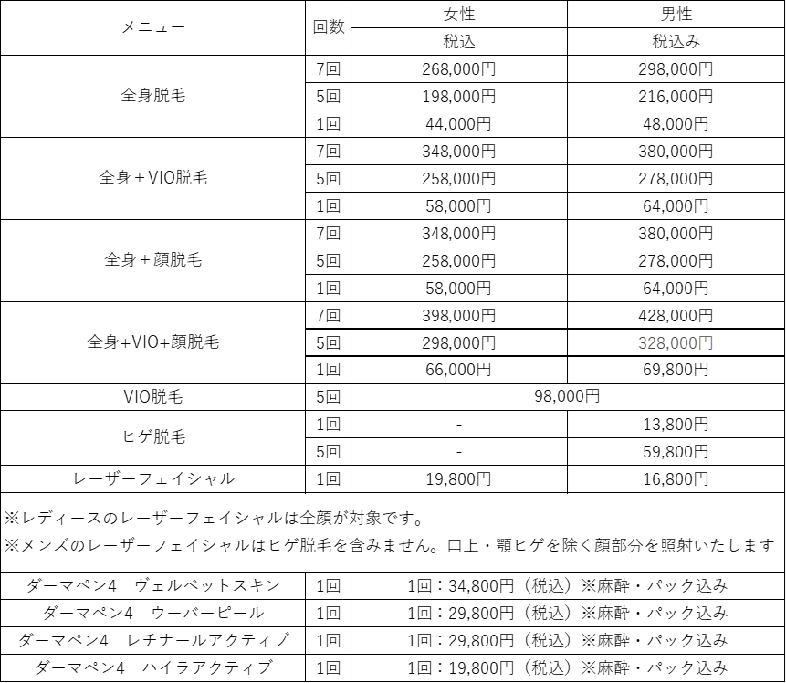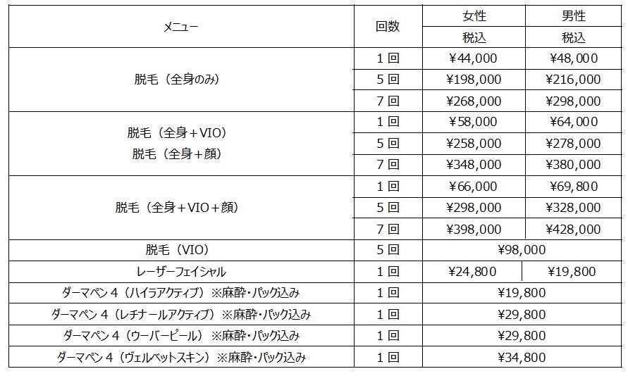 ※施術後、次のような副作用が現れる可能性があります。【医療脱毛】疼痛、毛嚢炎、熱傷、炎症後色素沈着、硬毛化 【ダーマペン】細菌感染、麻酔アレルギー、炎症後色素沈着、瘢痕化