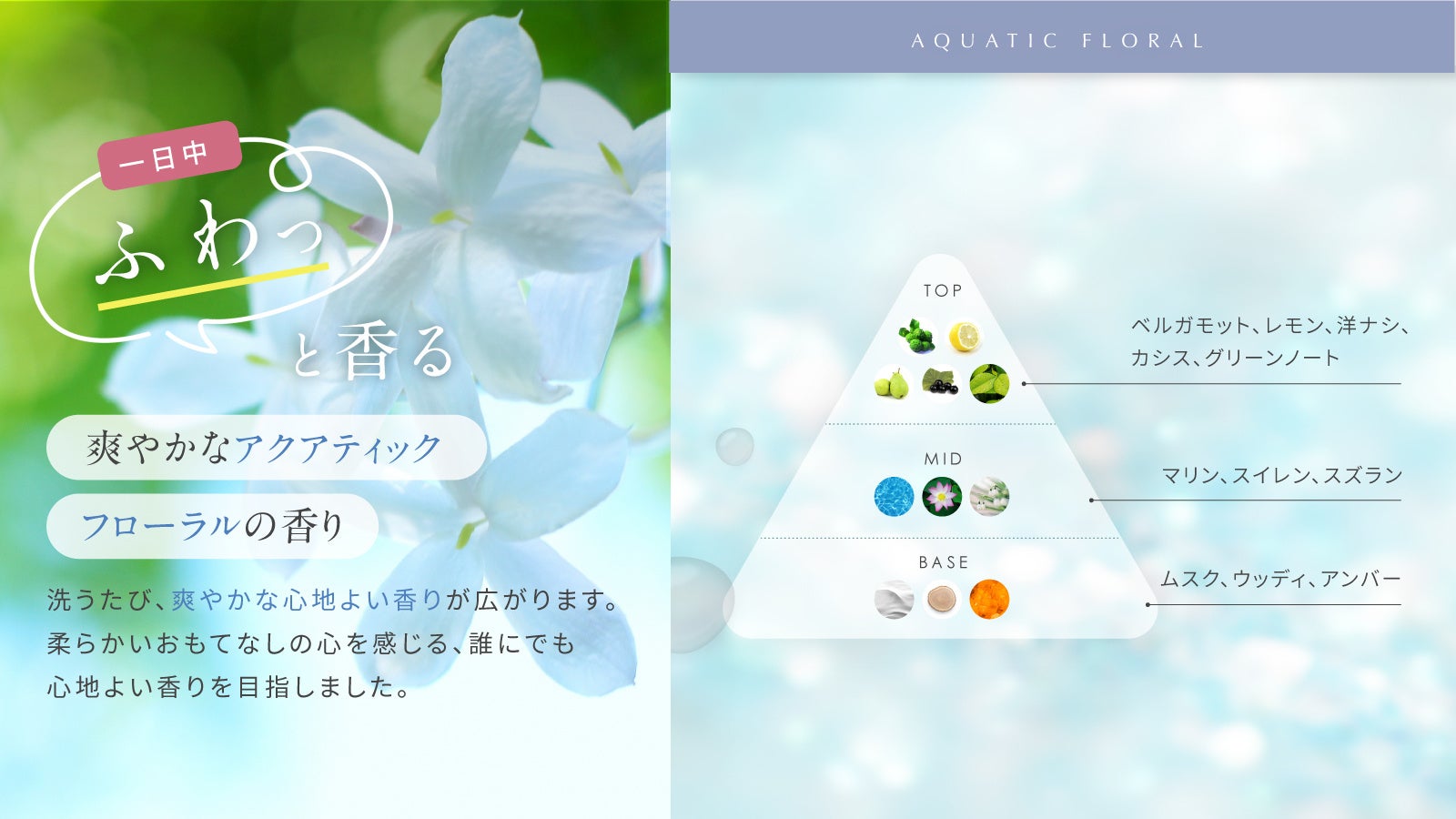 アクアティックフローラルの香りが、贅沢なリラックスタイムを演出します。