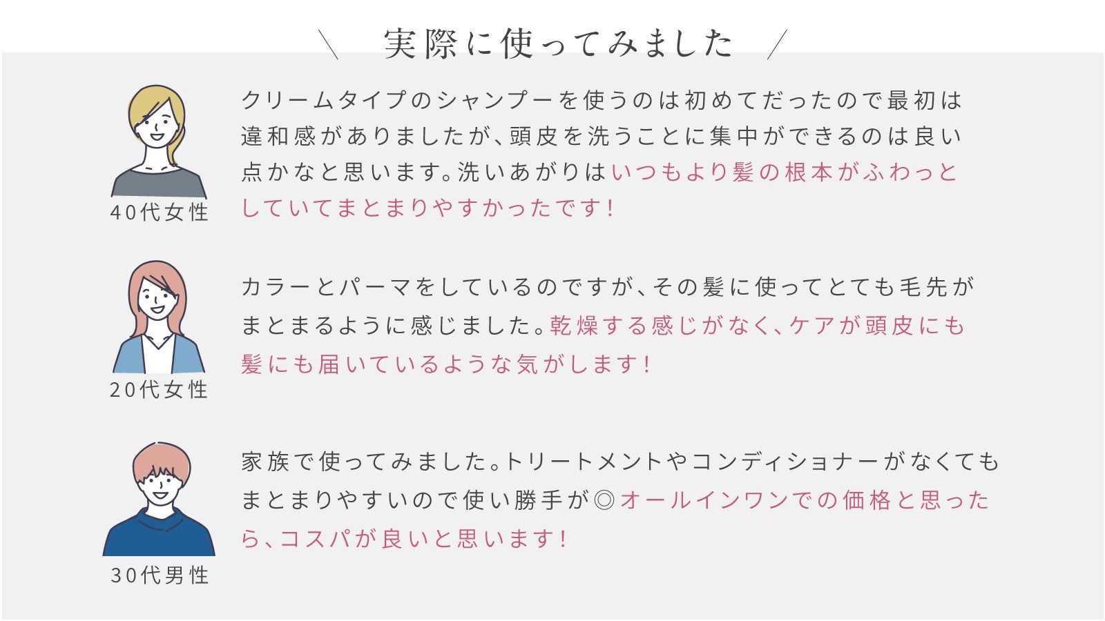 実際にリッチクリームシャンプーを使用した、体験者の声をまとめました。