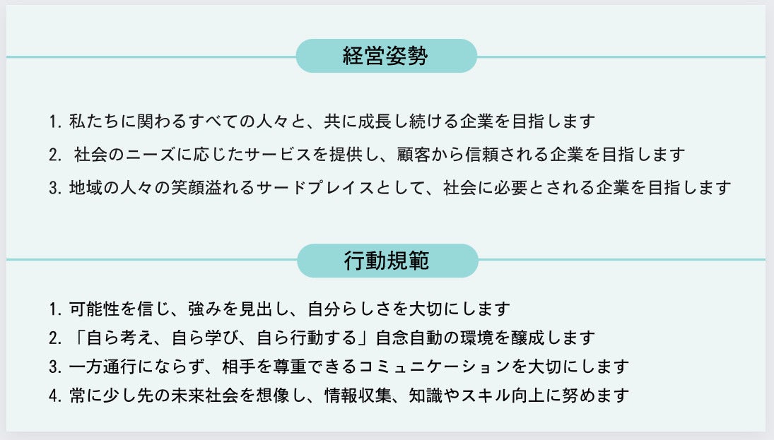 創業時の経営理念を一新し、今後は新経営理念「想いをカタチに つながるミライに」を掲げ、私たちに関わるすべての人々に新たな価値と可能性を見出し、社会に必要とされる存在になれるような基盤を整えていきたいと考えています。