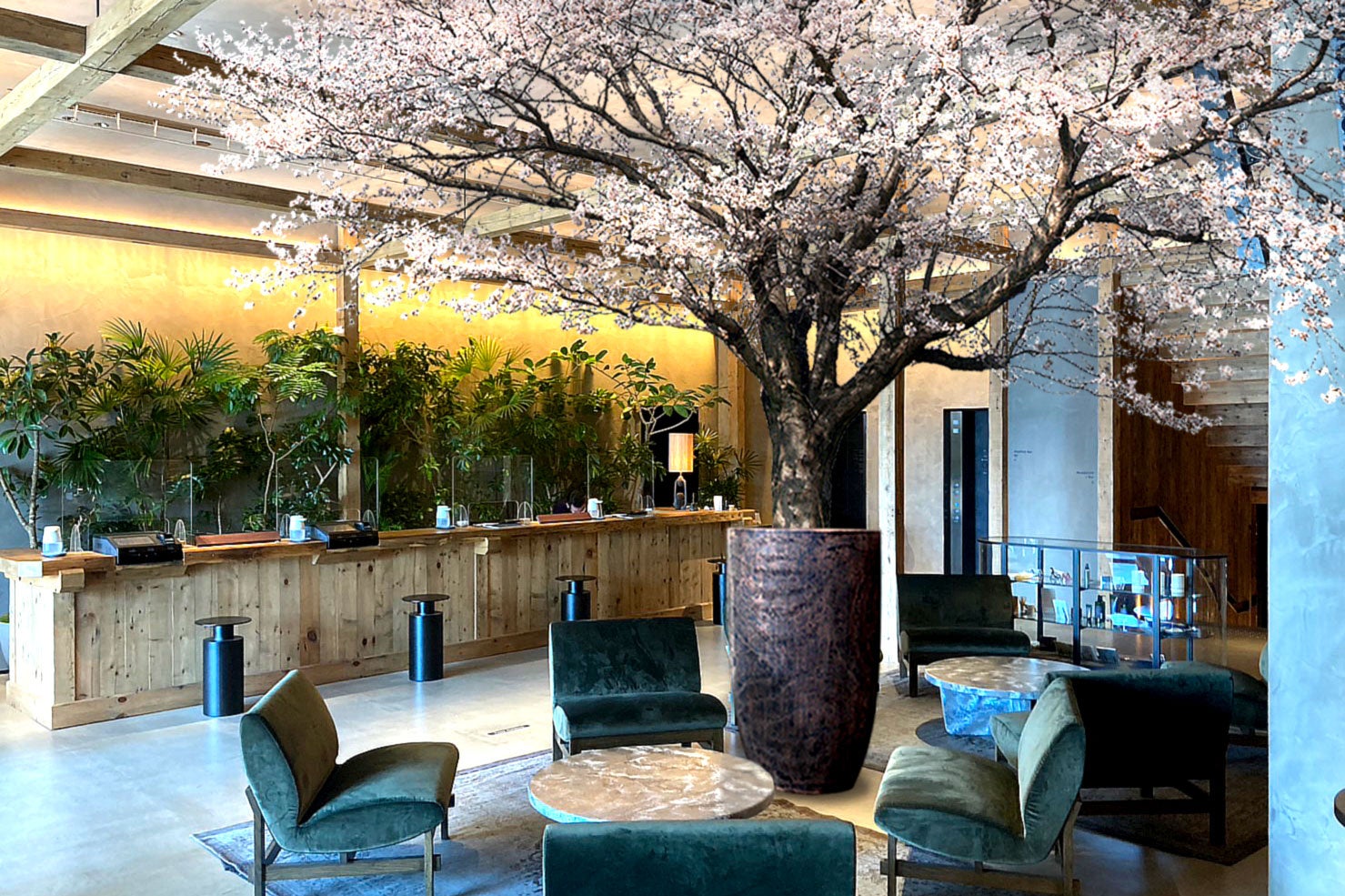 ノーガホテル京都が桜ピンク一色!高さ3m!ロビーに咲き誇る桜、京都を360°見渡す絶景テラスのフリーフロー&桜カクテル、桜スイーツで春を満喫
