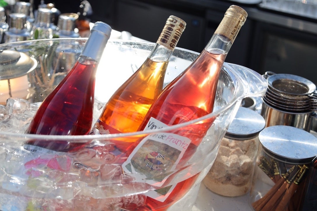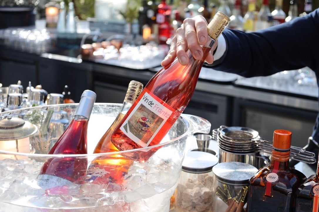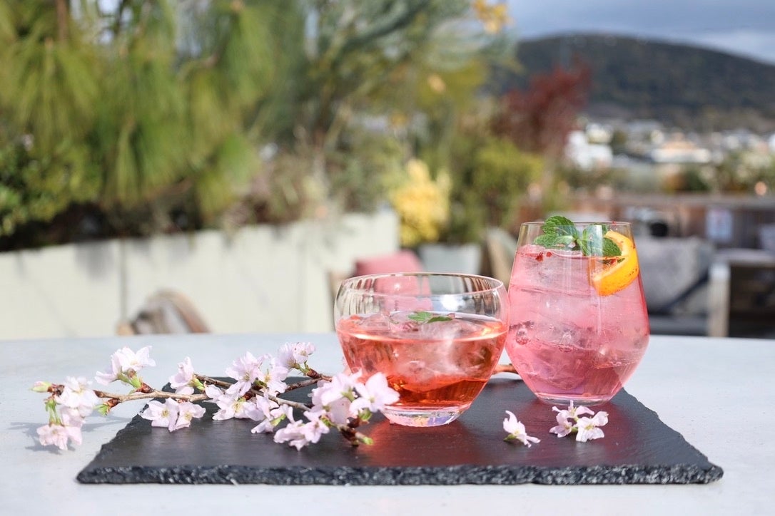 東山、清水寺、京都タワー、比叡山の山並みなど京都市内を360°眺められるホテル最上階のルーフトップバー「CICON ROOF TOP BAR」では、期間中、鮮やかな桜色をしたロゼのナチュラルワインをフリーフローで楽しめます(2,500円/1時間*)。*フリーフローは15時〜20時限定