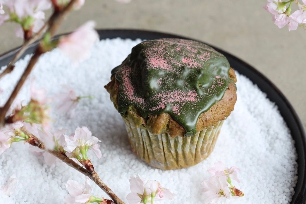 ベーカリーカフェ「CICON BAKERY/CAFE」では、春を感じる桜スイーツを提供!タピオカ粉を使ったもっちり食感の生地に風味豊かな桜グレーズを纏わせた、ピンクが可愛い「桜生ドーナツ(260円)」や濃厚な抹茶マフィンを抹茶チョコとピンクの桜パウダーでトッピングし、中には餡子を忍ばせて桜餅を思わせるような味わいに仕上げた「抹茶と桜のマフィン (480円)」をご用意します。