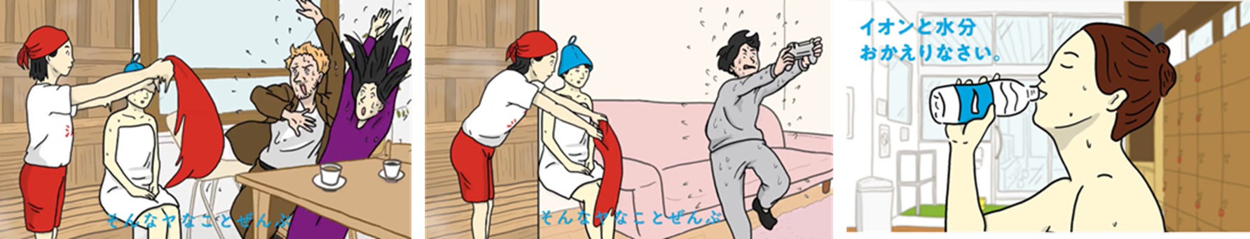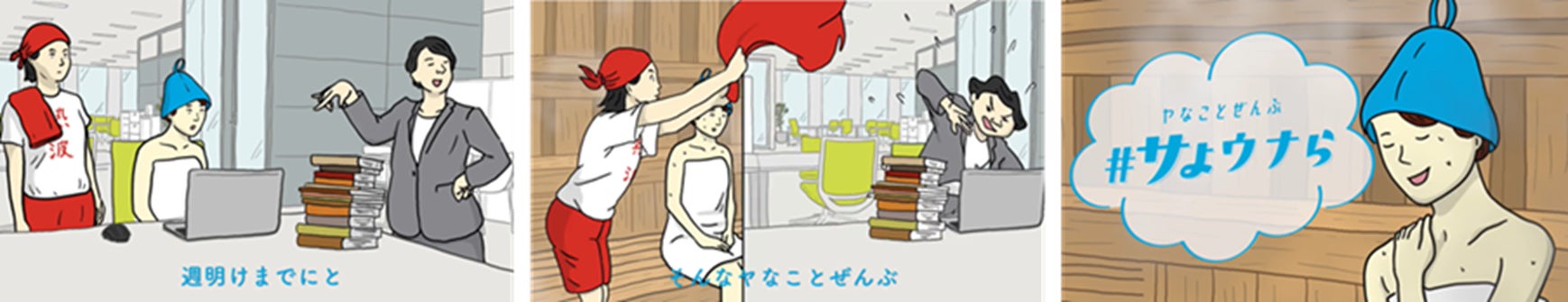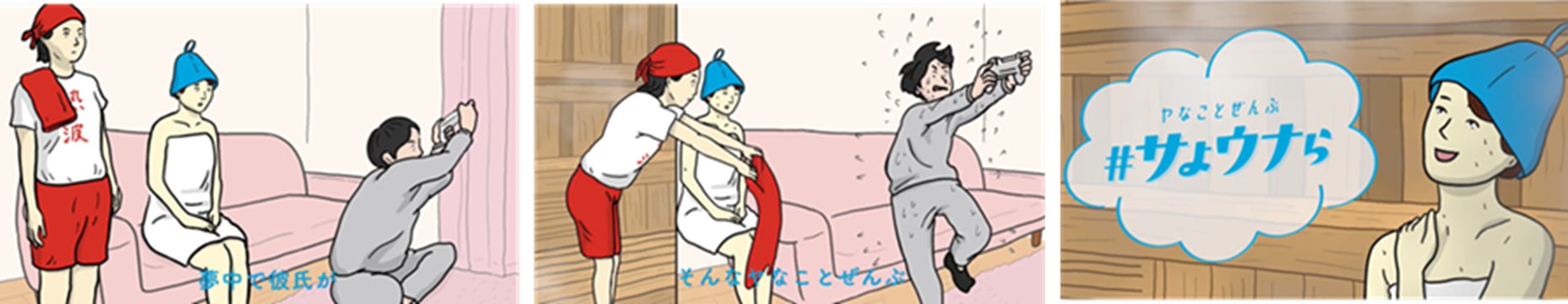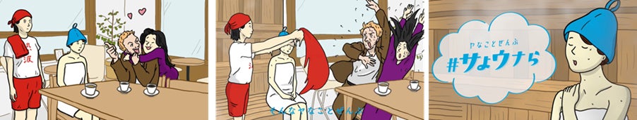 「サよウナらプロジェクト」発表に合わせて、シングル「モテすぎて草、誘ってて森」が再生回数1000万回超を記録した注目アーティスト、なかねかなさんが歌う「SAUNA PARTY」を主題歌に起用したWEBCM3篇を公開。「彼氏がイタリア人とかモテマウント強すぎ」「彼氏が夢中で追いかけるのは私じゃなくてゲームのモンスター」など”日々のヤなこと”を力強く歌う楽曲に合わせて、熱波師のアウフグースで悩みを汗とともに洗い流す爽快感溢れる仕上がりに注目です。