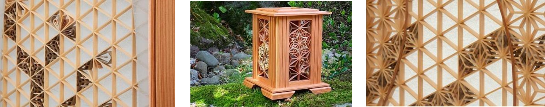 福岡県の伝統文化として、福岡県知事指定特産工芸品に指定されている大川組子。仁田原建具製作所はその技術を昇華し、繊細な装飾や曲線表現による自由な組子を生み出している。