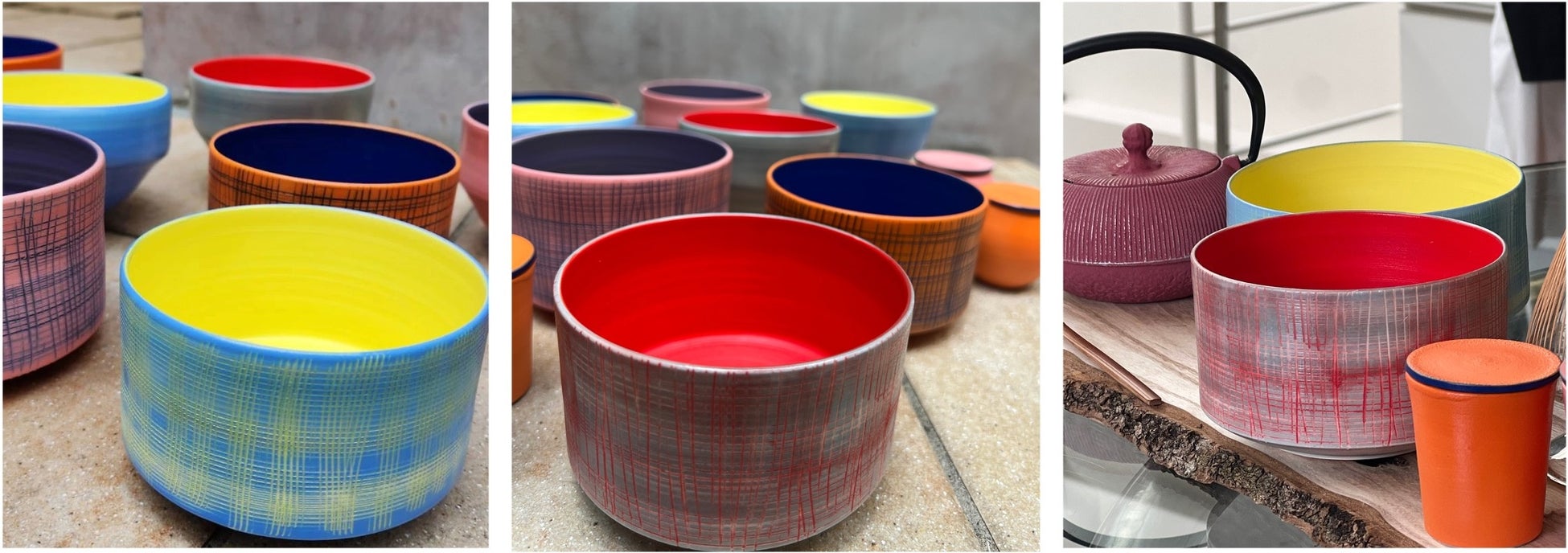 相馬弁の方言で「見守る」という意味のMABURU。第一弾としてCHA_MABURU(お抹茶道具)コレクションを発表。1760年から続く大堀相馬焼陶吉郎窯10代目のTAKASHI KONDOがディレクションをつとめる新ブランド。TAKASHI KONDOの手の温もりから生まれる曲線美とカラフルな彩りが特徴的な器。今回はオリジナルお抹茶茶碗、棗(なつめ お抹茶を入れる容器)、建水(けんすい 茶碗を清め/温めるときに使う湯などを捨てるために使う器)を販売。ファッショナブルでカラフルな器の中に、大堀相馬焼の特徴である千鳥をほどこしました。お抹茶を飲みほすと可愛らしいハートのような型が器から浮き出て心がふっと癒される一品です。