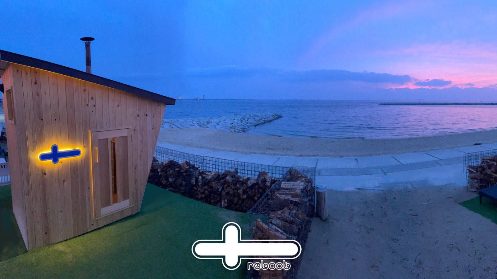 実際のreboot houseは、常滑市りんくうビーチのサウナ施設Steamers Beach&Saunaにて、展示中。