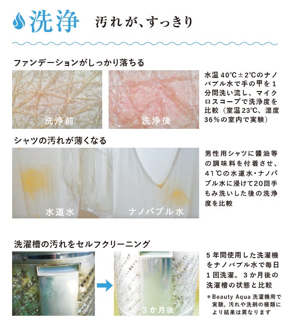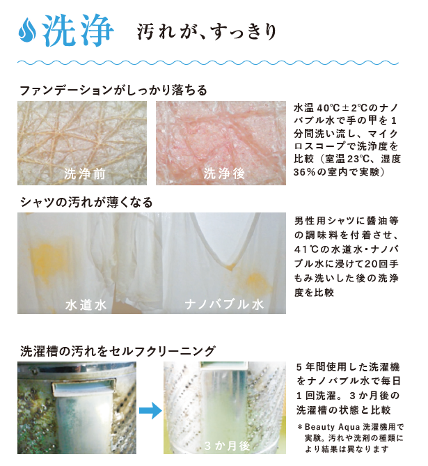 ファンデーション汚れ、衣服についた調味料のシミも、細かな潤いナノバブル水で落ちやすくなります。