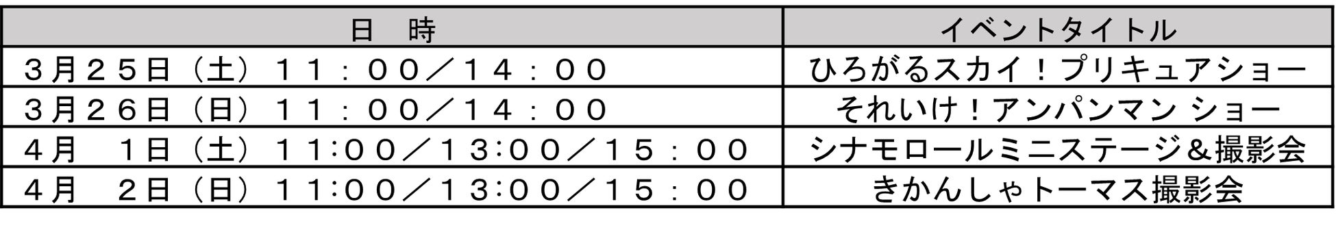 ・内 容:2周年祭期間の毎週土日に人気キャラクターたちがイベントを盛り上げます。