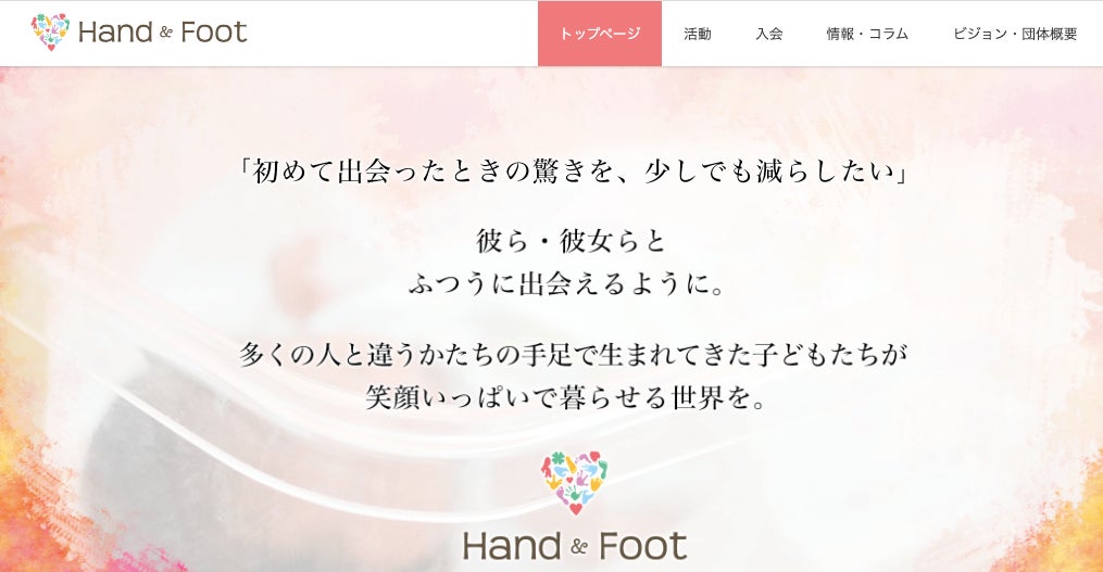 理事長 浅原の娘が、右手の指が3本で生まれ、手術後の情報交換のために、2013年に立ち上げたコミュニティがきっかけとなり、2016年に特定非営利活動法人Hand&Foot(はんどあんどふっと)としての設立認証を受けました。現在は、先天性四肢障害、四肢欠損、欠指、裂手、裂足、絞扼輪症候群、短指、巨指症、多指症などをもった全国約1200家族が参加するコミュニティSNSを管理しており、相談ごとや心配があれば互いに支え合い、日々情報交換を行っています。