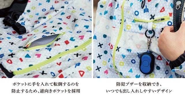 子供が安全に道を歩ける「安全・防犯」を第一に、かつ毎日子供が楽しく着てくれるようなデザイン性も兼ね備えた