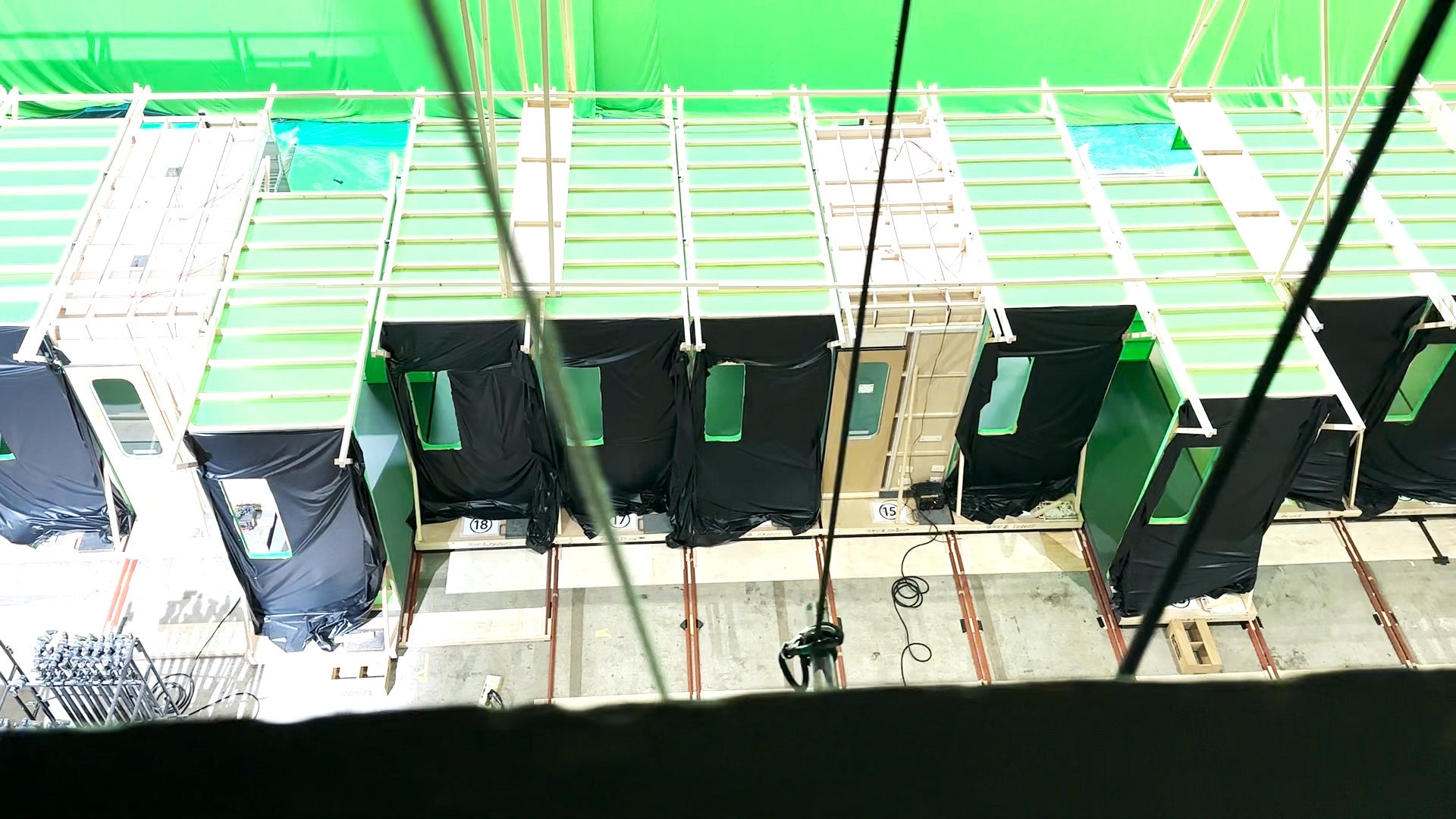 本ムービーのもうひとつの見どころが “ループ車両”。父娘が立つ車両の一部分が、まるで金太郎飴のようにループしながら、左右に蛇行していき、父娘の関係性の変化を演出しています。撮影は、輪切りにされた美術セットを25台用意し、カウントに合わせてひとつひとつ人力で動かしながら撮影されました。