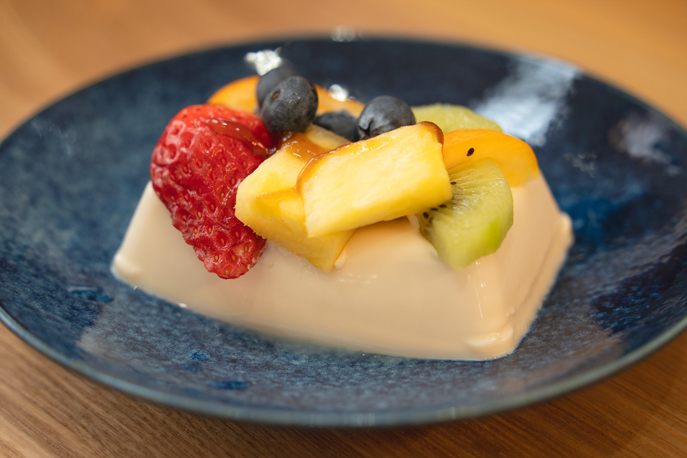 ②イチゴやキウイ、ブルーベリーなどのフルーツを盛り付ける