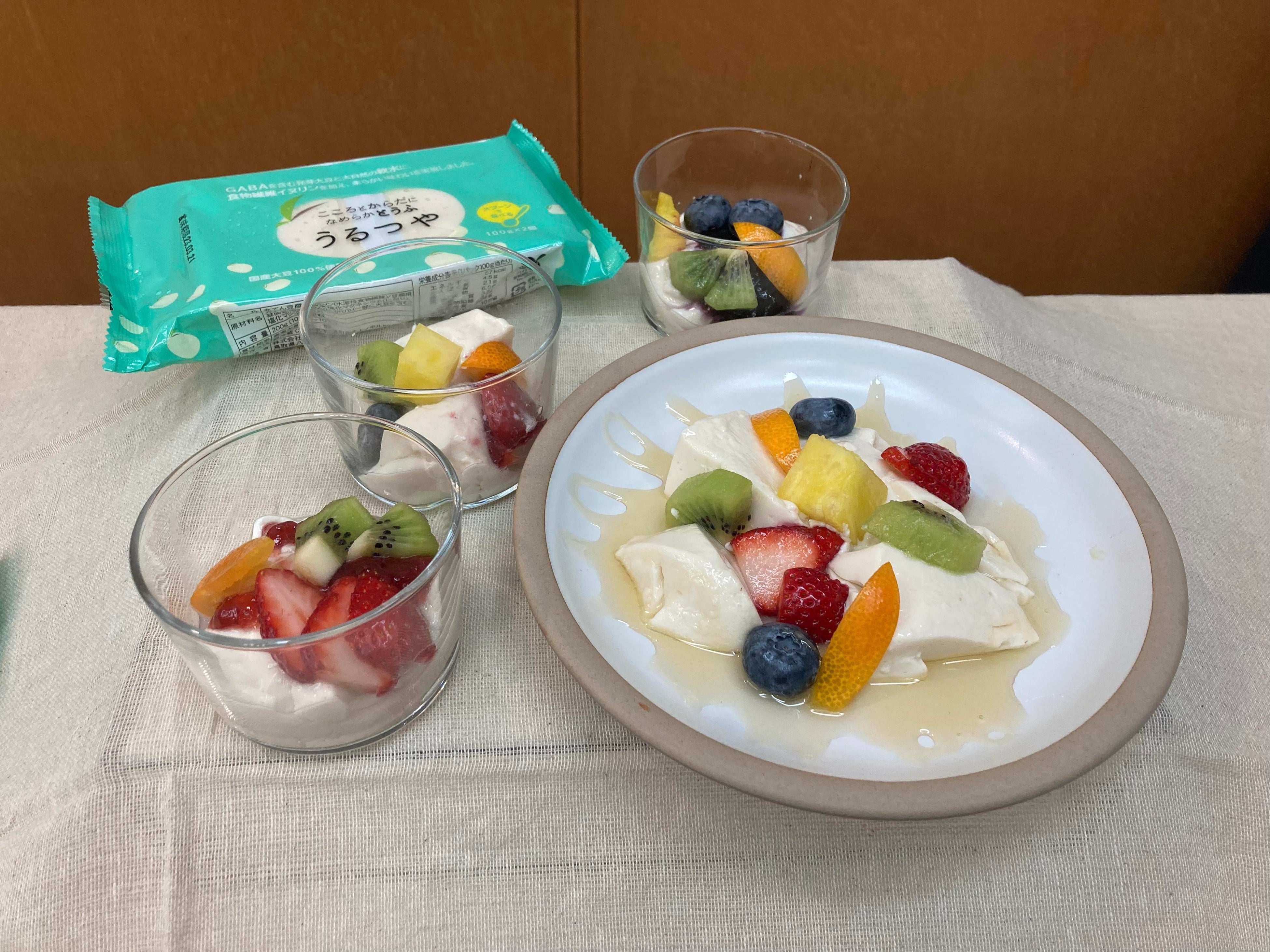このたび、新たな味わいをお楽しみいただくため、国産の発芽大豆を100%使用した新製品「うるつや」を発売します。厳選された国産大豆から作られた“つやっと”した見た目に、一口目に口当たりのよい滑らかな触感と柔らかな口当たり、その後に感じられる大豆の甘み、そしておいしさの原点である芦津の山深い石清水を感じられる絶妙な味わいを楽しむことができる新感覚の豆腐です。「うるつや」のきめ細やかでリッチな味わいは、はちみつやブルーベリーソースの甘さとの相性もぴったりで、簡単なアレンジでSNSでも映えるような“スイーツ豆腐”をお楽しみいただける製品となっています。