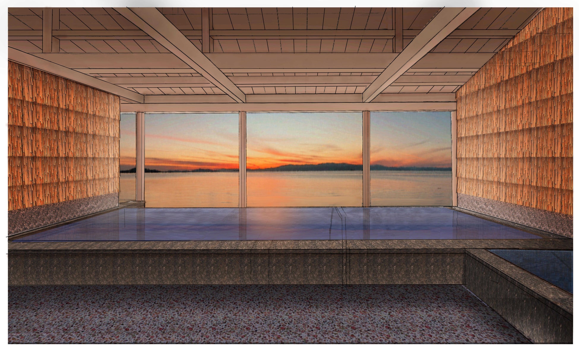 また、温泉浴場棟には自家源泉の天然温泉を利用した露天風呂、ジェットバスを備えた内湯やロウリュウを備えるサウナや水風呂などを完備。琵琶湖に沈みゆく夕陽を最前列で眺めながら温泉に揺蕩うひと時をお愉しみいただけます。