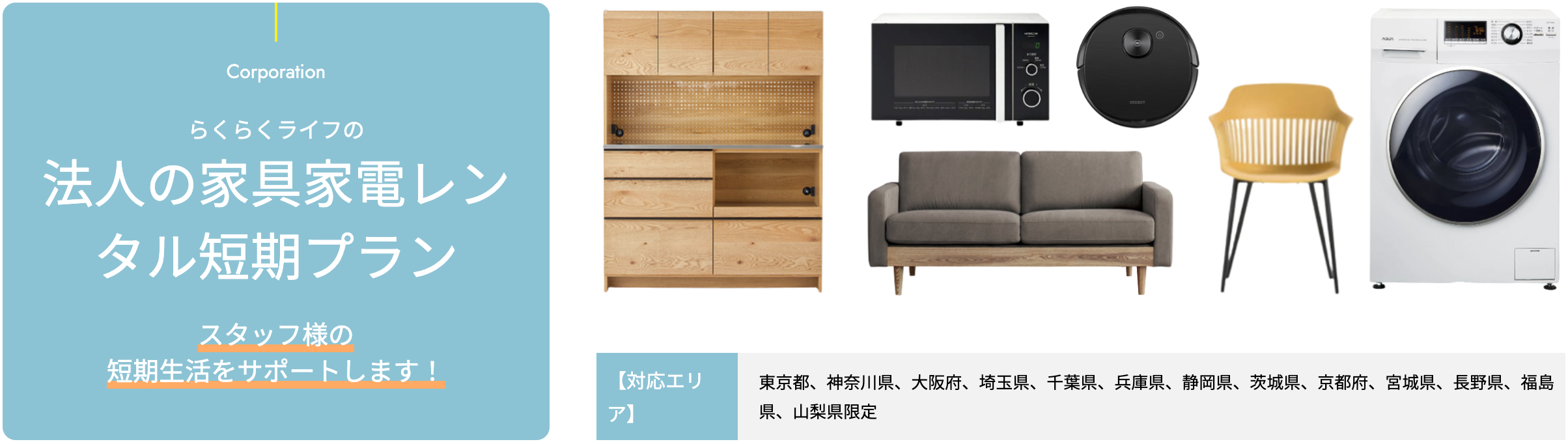 短期工事や短期出張で一時的に家電や家具が必要な場合にご利用されることが多いです。