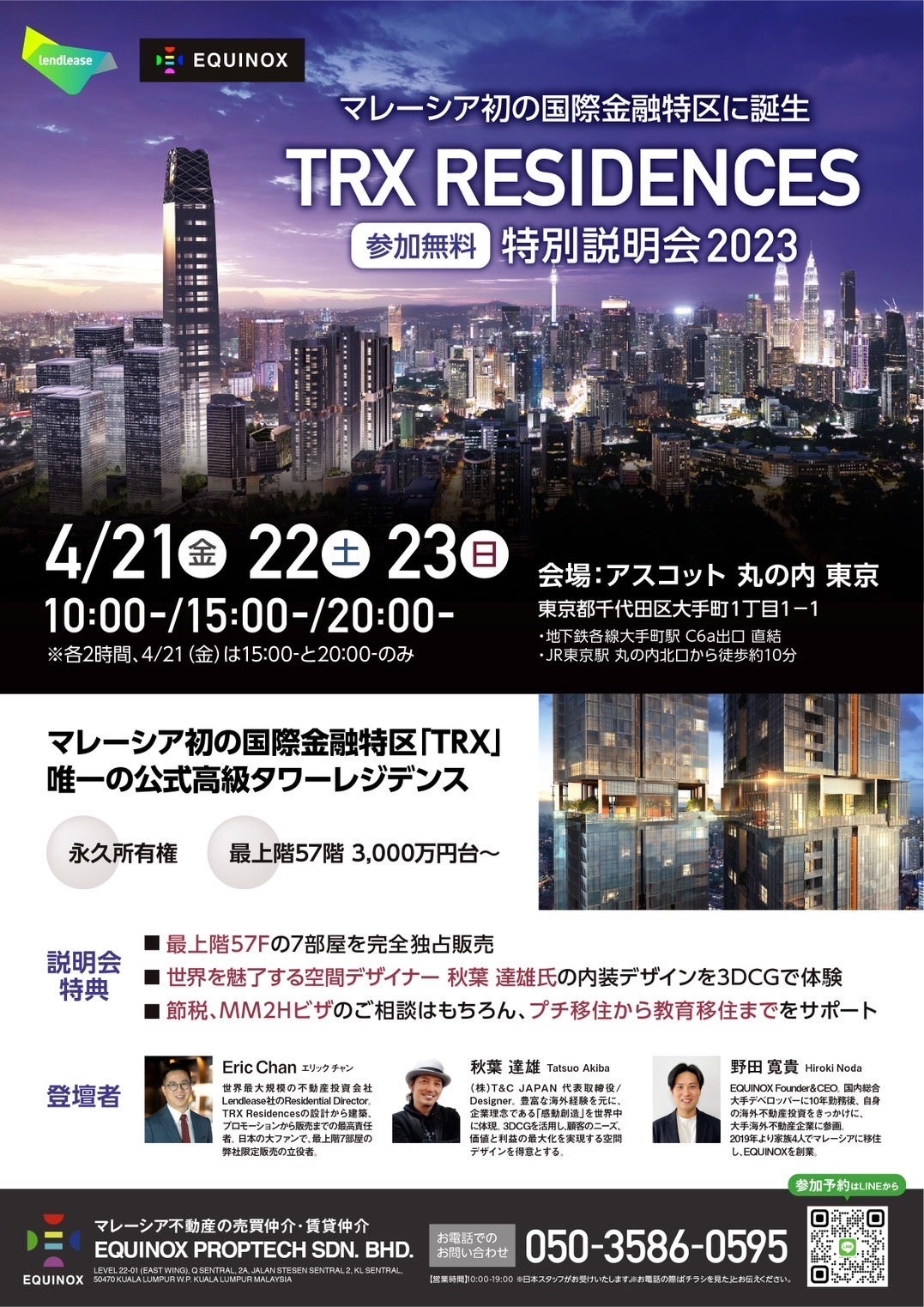 マレーシア初の国際金融特区「TRX」唯一の公式高級タワーレジデンス最上階のデザイン担当をする秋葉達雄が特別説明会に登壇決定!
