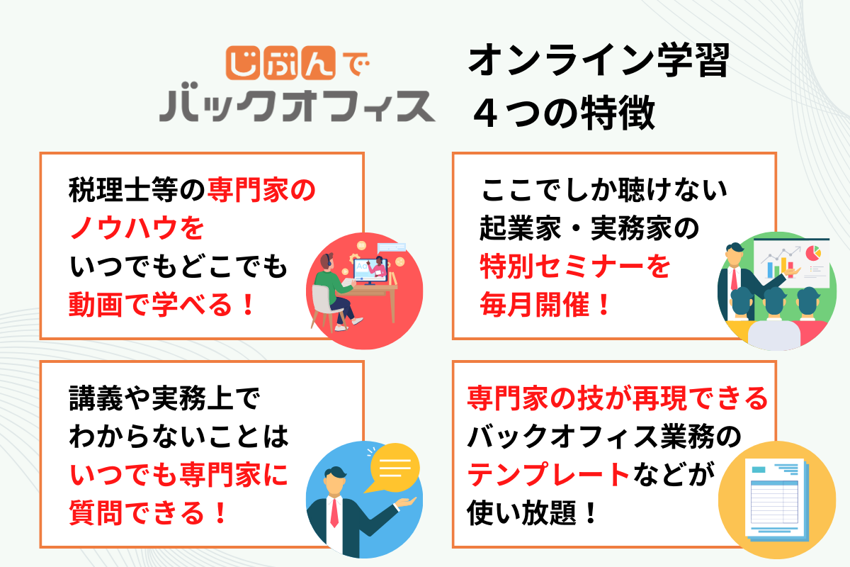 また、税理士による定期的な記帳のチェックを受けたり、起業家・実業家の特別セミナーを受講したりすることも可能です。