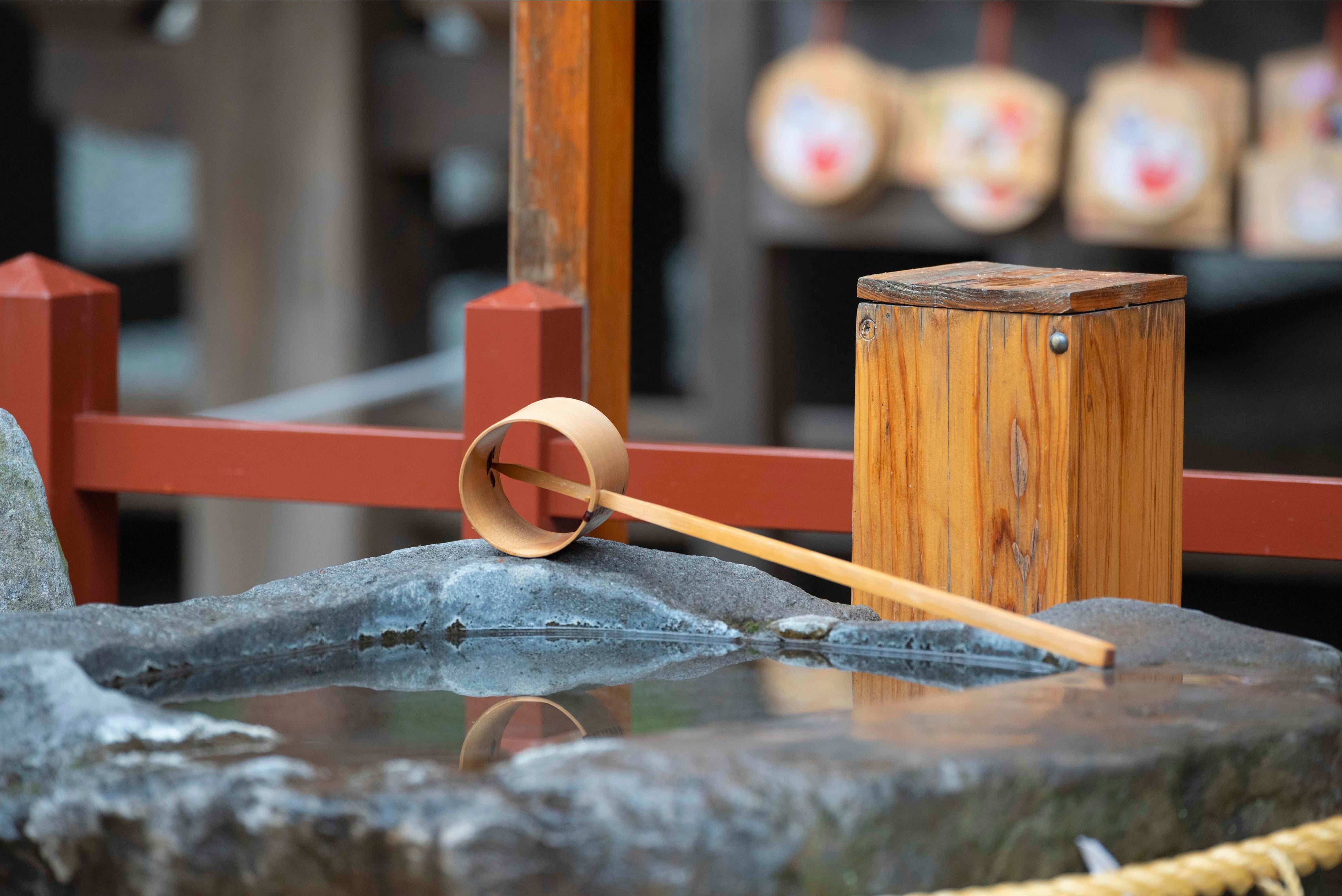 江戸時代以降、安産を祈る人々が軽くヌケル(生まれる)ようにと、底を抜いた柄杓「抜けびしゃく」を奉納するようになり、現在も安産・子育ての神社として、篤い信仰を受けています。