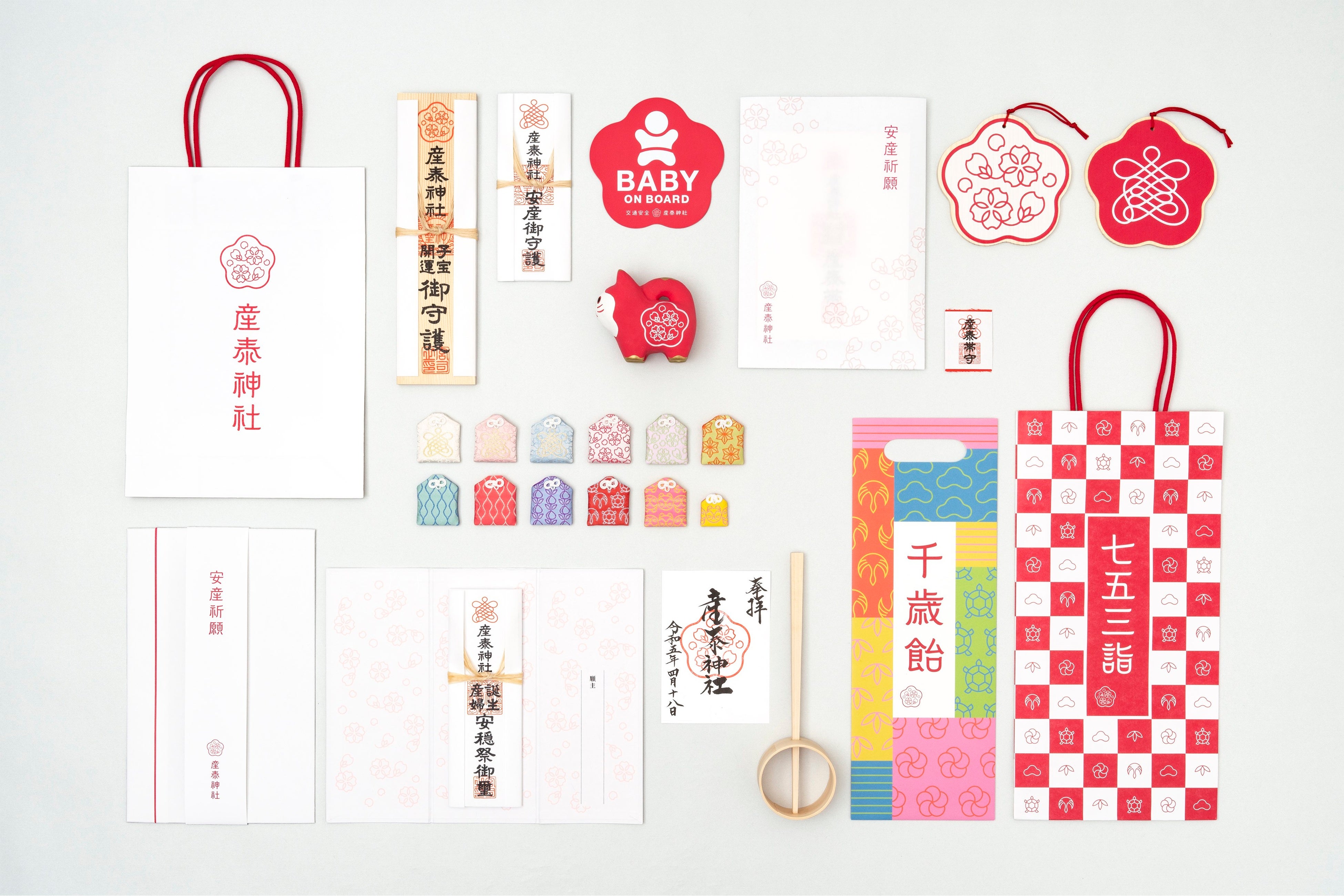 母と子を取り囲む環境や価値観が日々変化している中、これからの時代の母子と家族により寄り添える神社になりたいとの思いを込めて、昨秋社紋を一新し、今春には授与品のデザインを刷新しました。ブランディングデザインは、そのパイオニアでもある株式会社エイトブランディングデザインと協働しています。
