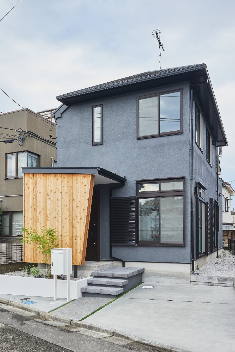 ビフォーアフターの劇的な変化: 懐かしさを感じる外観から、洗練された都会的なイメージに刷新。屋根や窓は同じ形ながらも、建て替えと見間違えるほどのスタイリッシュな住まいに生まれ変わりました。