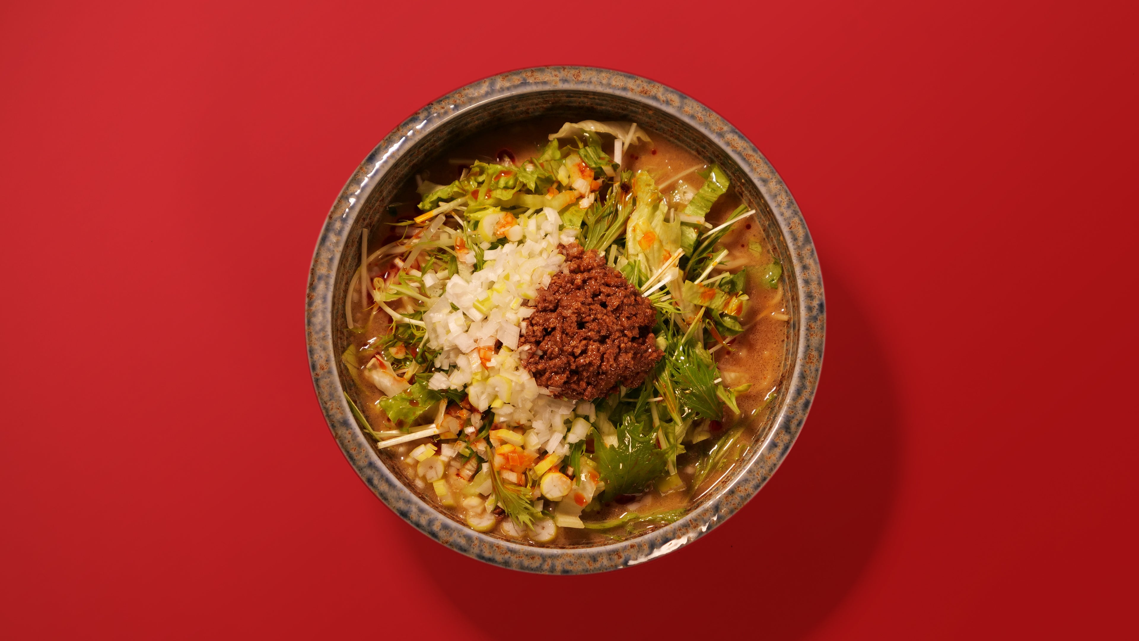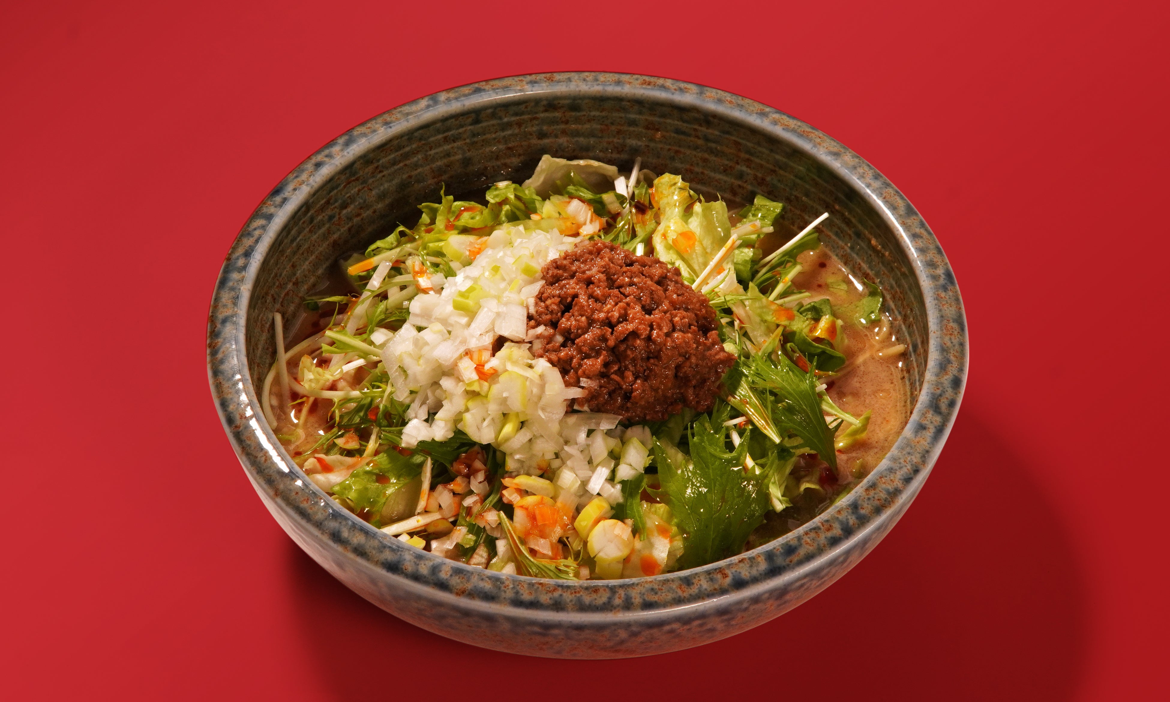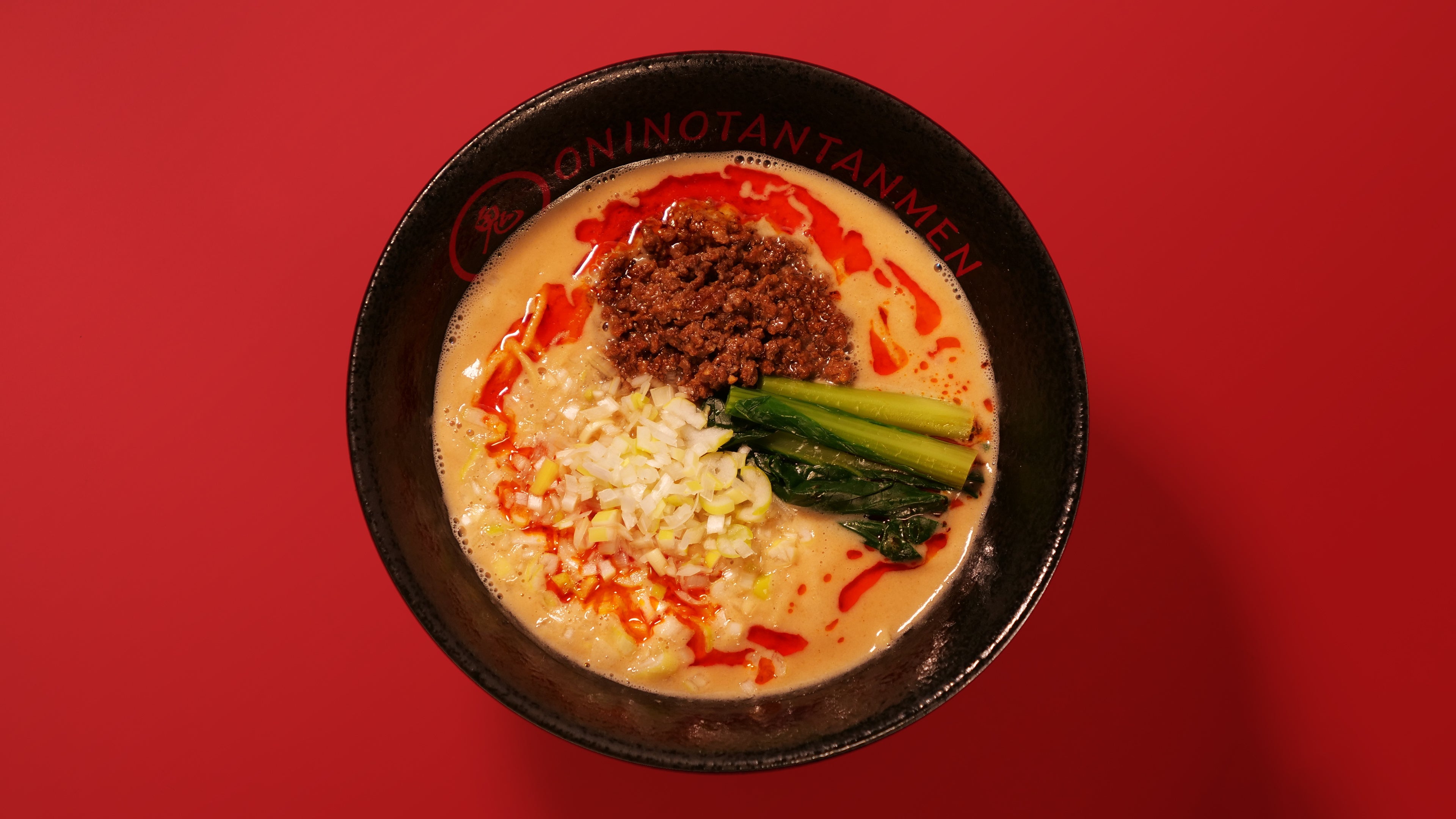 通常の担々麺の胡麻ペーストに、黒ゴマを使用したペーストを加え風味豊かな味わいに。白胡麻担々麺よりもさっぱりキレのある味わいで、おすすめの逸品。