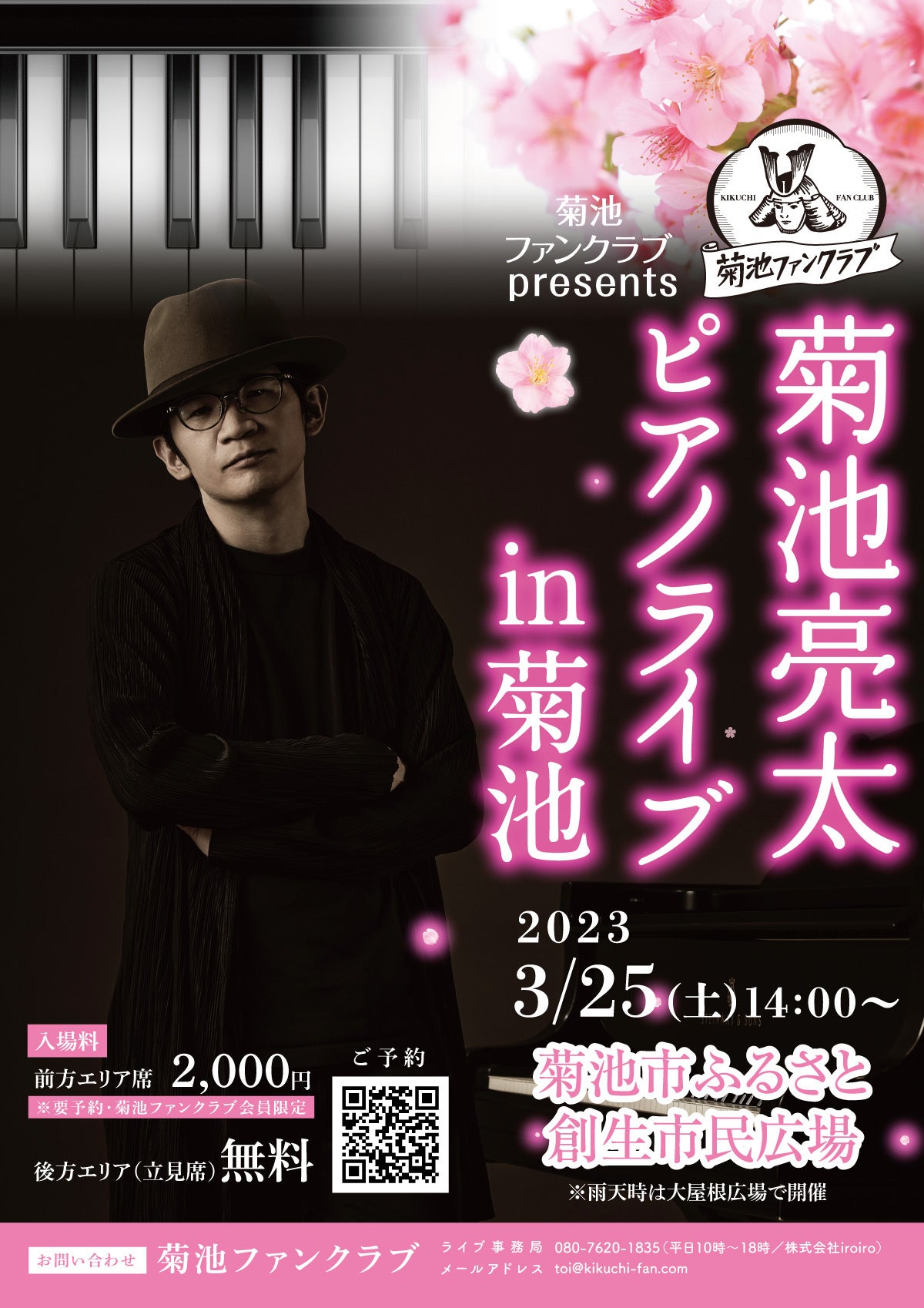 この度来たる3月25日(土)、菊池市ふるさと創生市民広場にて人気ピアニストの菊池亮太さんをお招きし、桜満開の菊池公園でピアノライブを開催します。(主催:菊池ファンクラブ<一般社団法人菊池観光協会> 運営:株式会社iroiro)