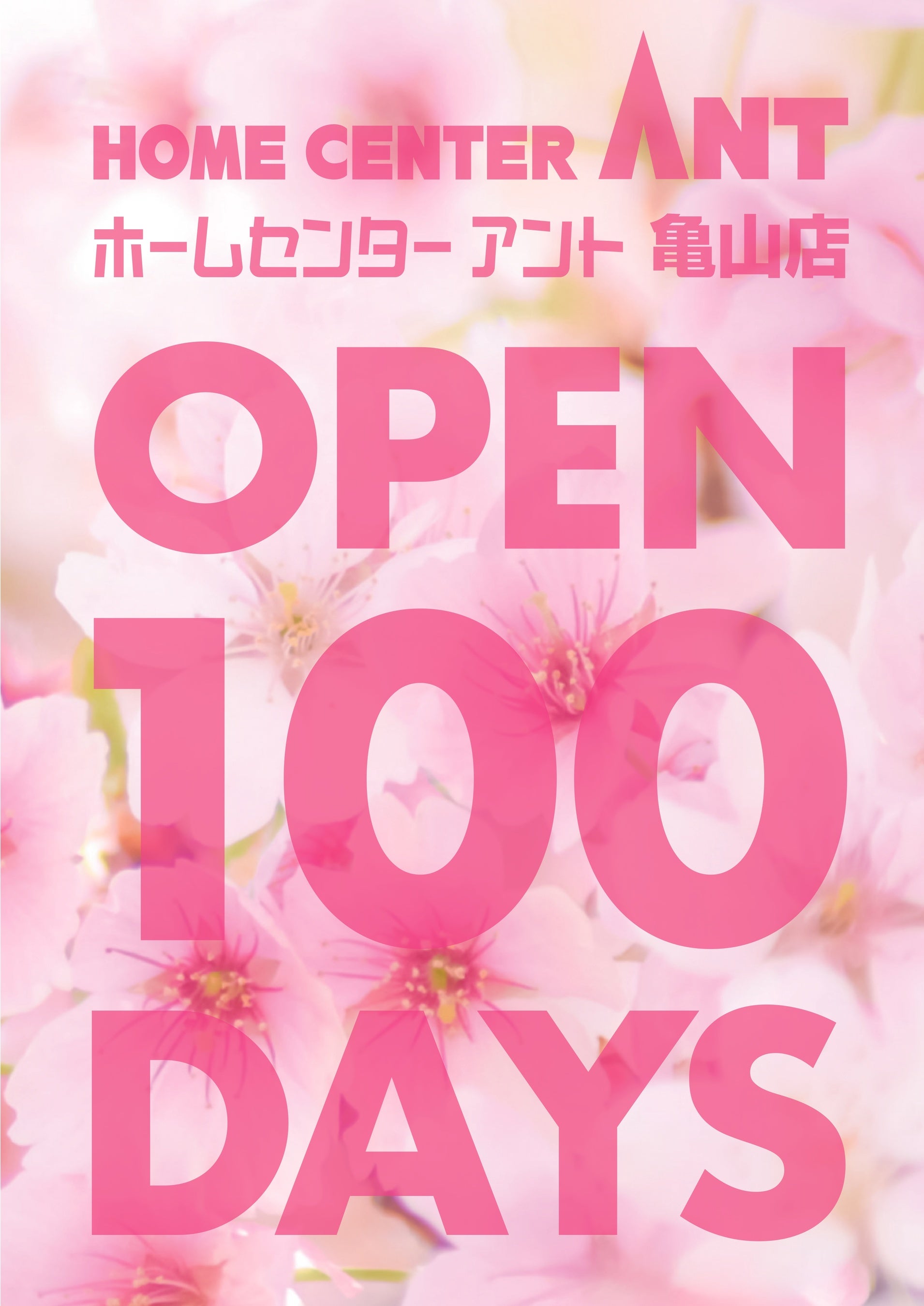 愛知県を中心にホームセンターアントの運営を行う株式会社ホームセンターアント(所在地:愛知県春日井市大留町4丁目6番地の3、代表取締役 安藤 通康)は、三重県に初出店したホームセンターアント亀山店のオープン100日を記念した「オープン100日祭」を亀山店はじめ、【協賛セール】として愛知県の高蔵寺店、守山店、藤岡店、瀬戸店の全店で、3月25日(土)から3月31日(金)まで開催いたします。