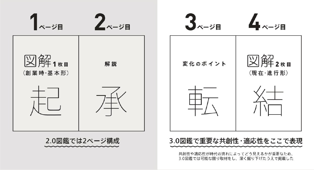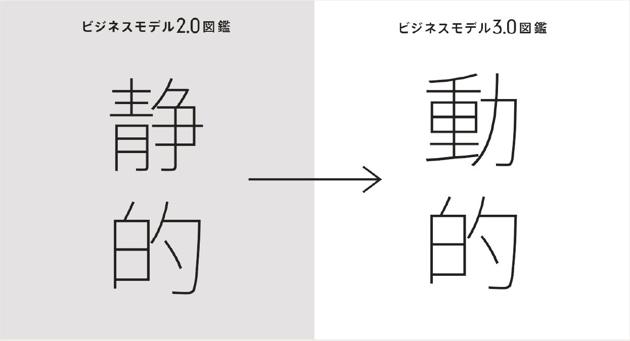 前作がビジネスモデルをある一時点の「静的」なものとして捉えていたのに対し、本書は、進化し続ける「動的」な構造に着目した図鑑です。