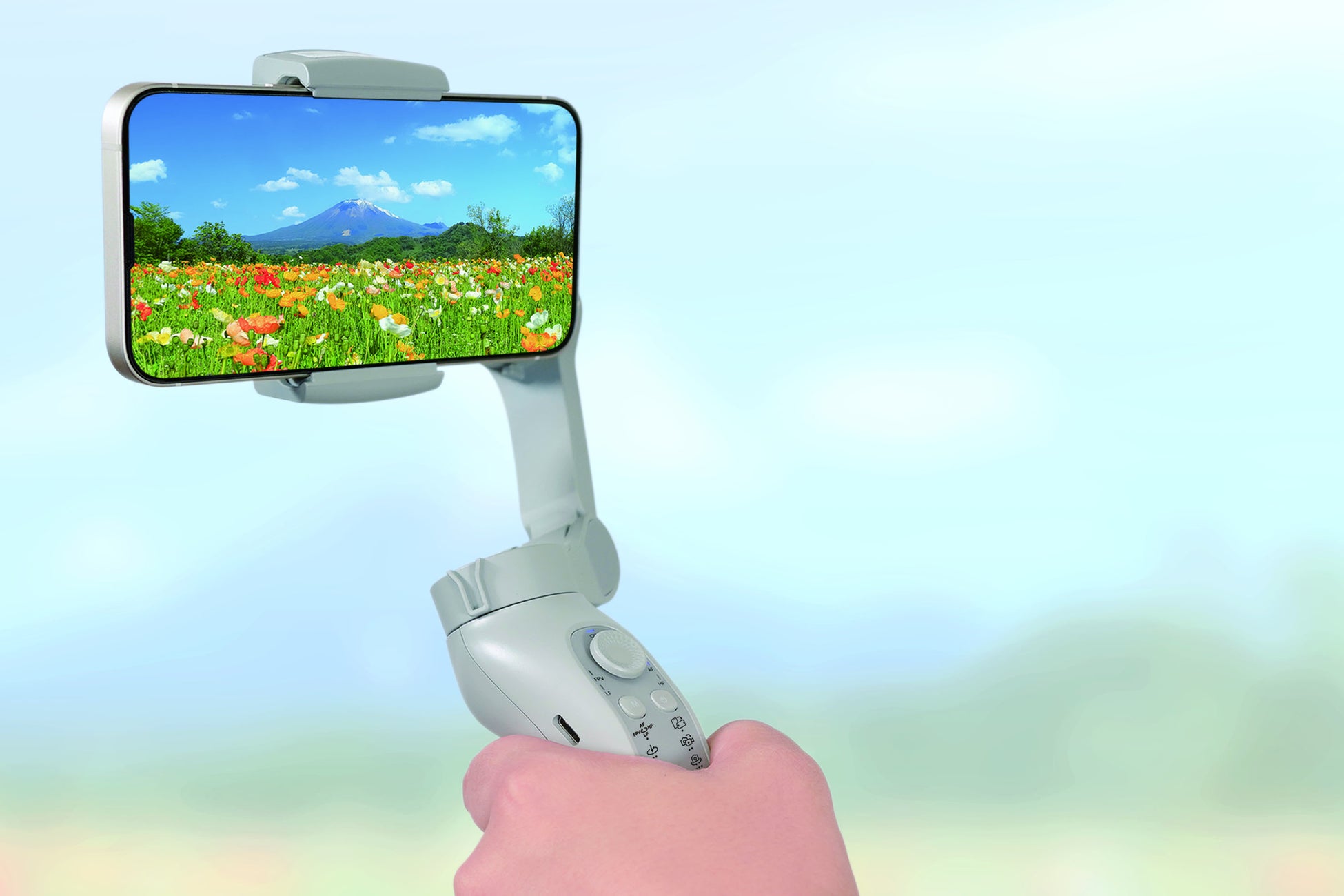手元で簡単にジンバルの角度調整やモード切替ができるため、撮影に集中できます。